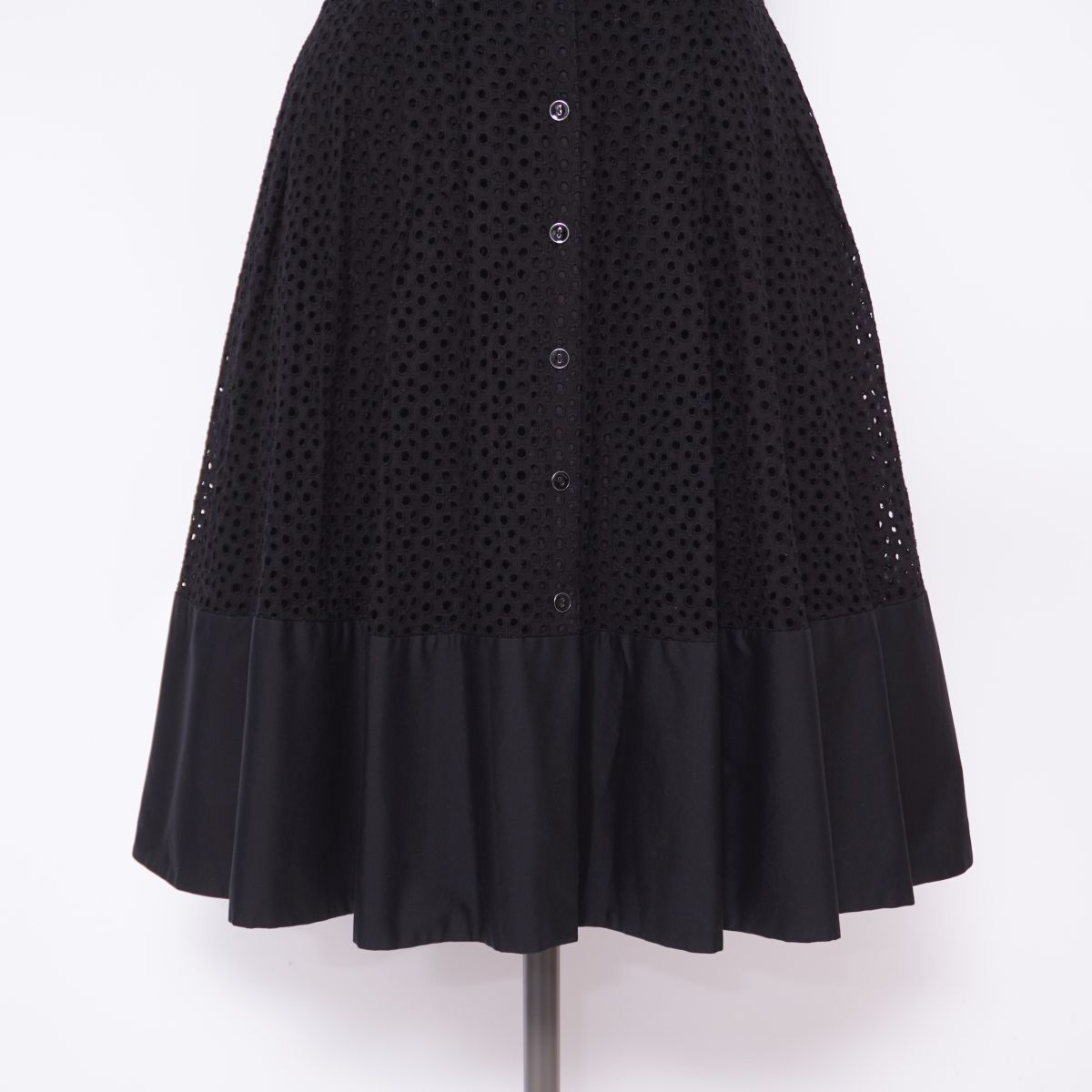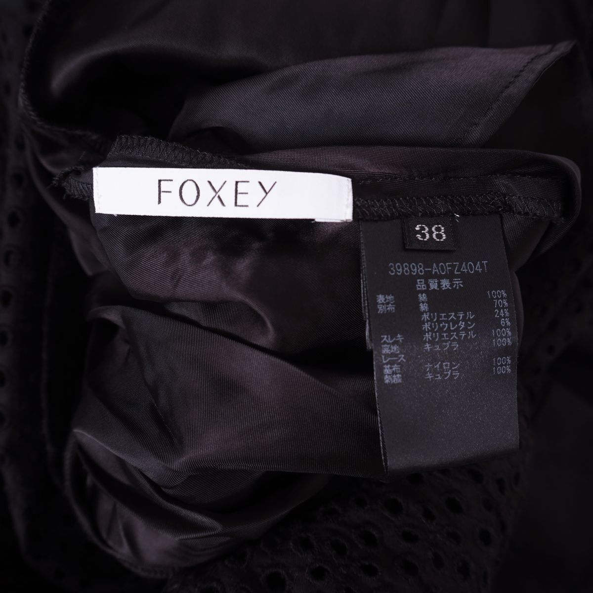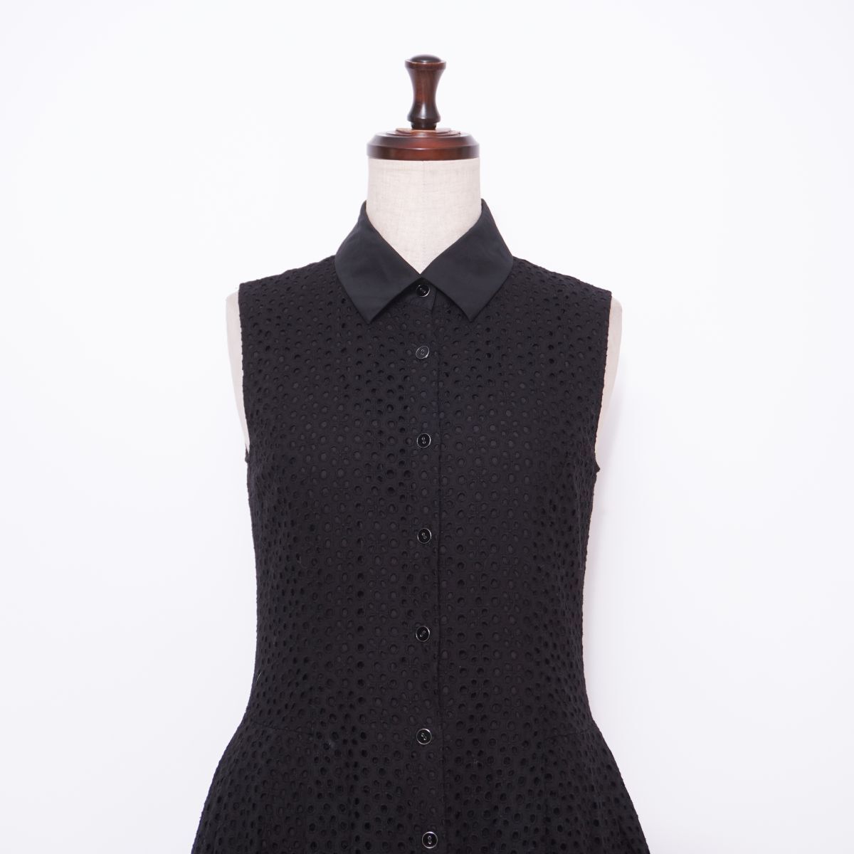 美品 FOXEY フォクシー コットンレースノースリーブシャツワンピース Aラインドレス フレア 膝丈 切替 黒 ブラック サイズ38*GD405