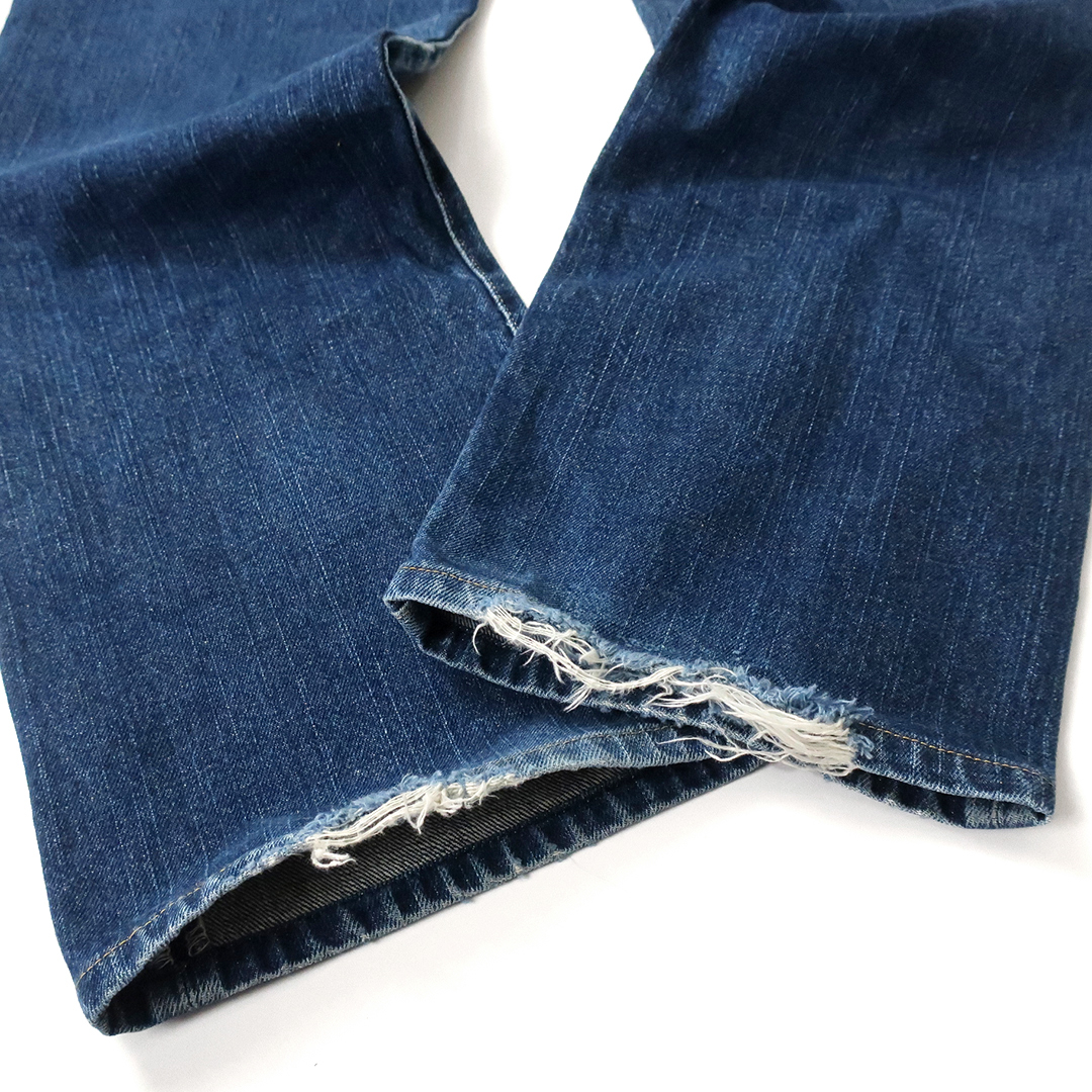 経年に伴う若干の着用感(色落ち感)、裾ホツレなどがございます。
