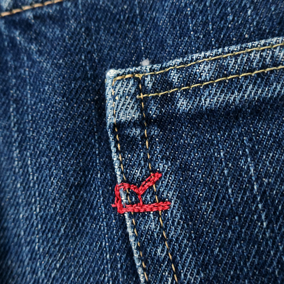 自然なエイジングのヒゲ落ち、縦落ち感に仕上がっております。
