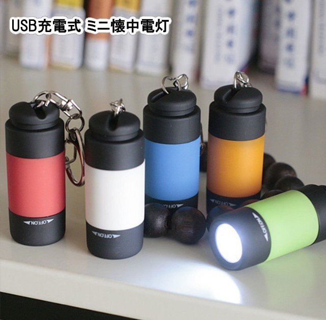 ミニサイズでカラフルなデザインのUSB充電式ライト。