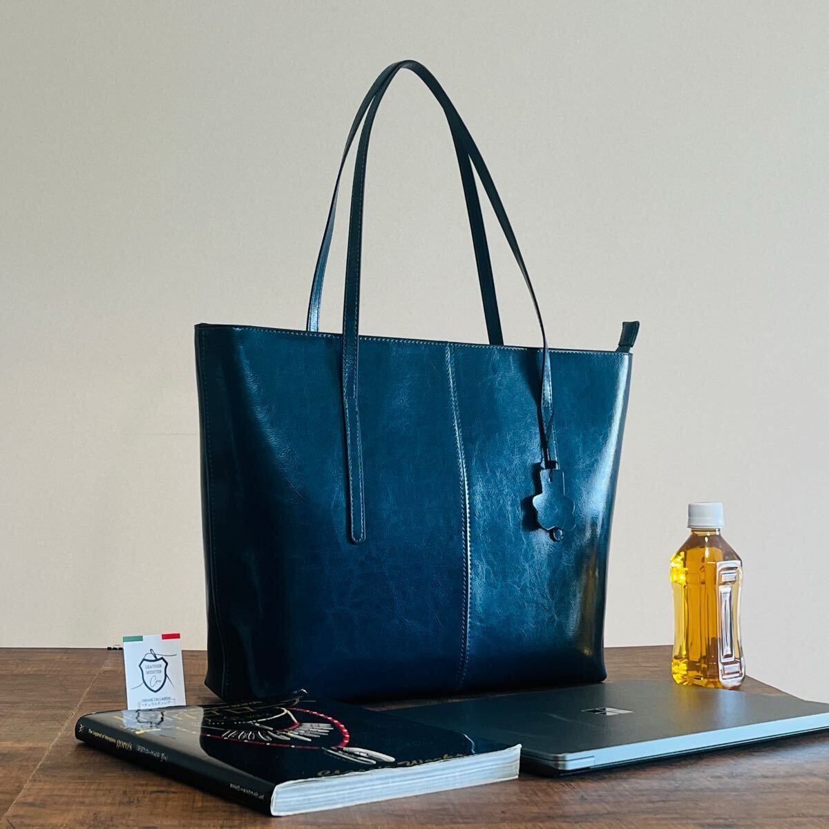 たっぷりの書類を詰め込みたいビジネスシーンや、休日のちょっとした旅行にも好相性な頼れる大容量の本革シンプルトートです。