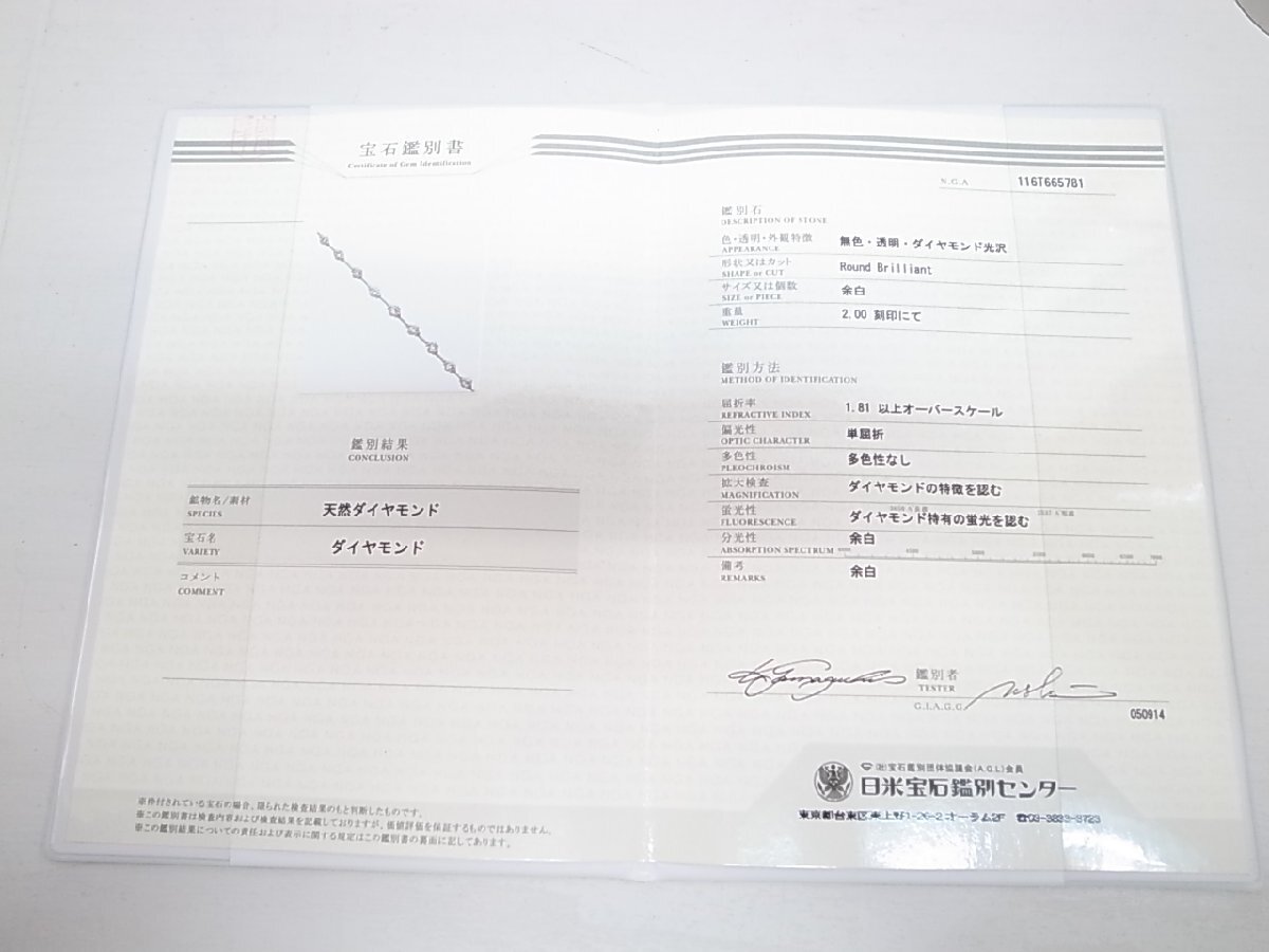 商品名 | K18WG 2CTダイヤモンド テニス ブレスレット |