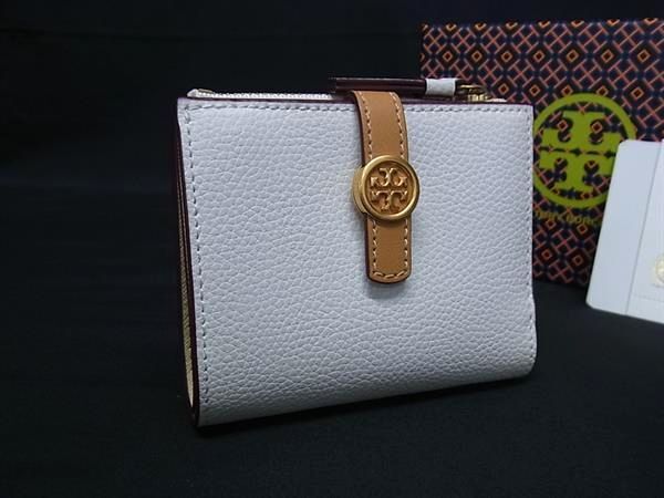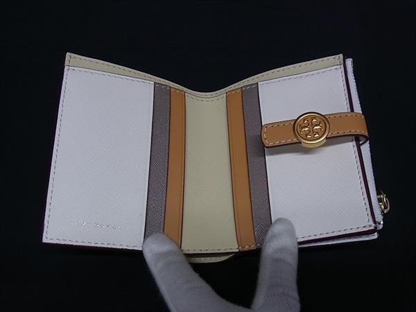1円 ■美品■ TORY BURCH トリーバーチ ロビンソン レザー 二つ折り 財布 ウォレット 札入れ 小銭入れ カード入れ ホワイト系 FQ2197