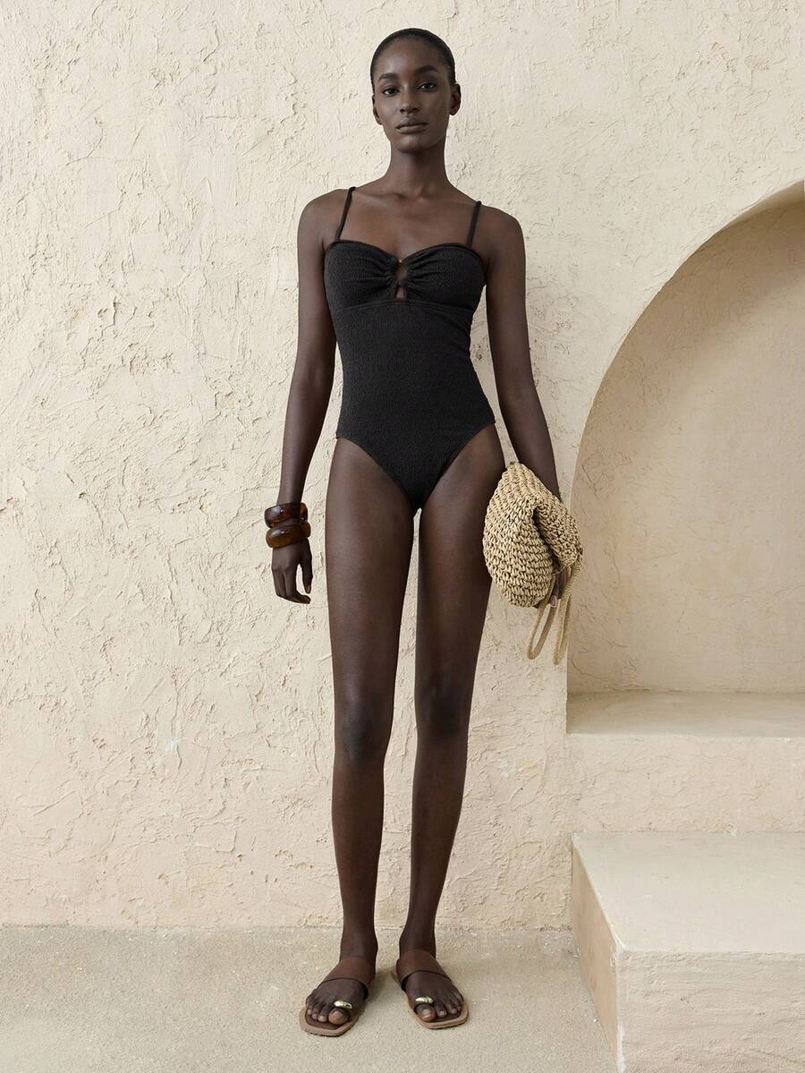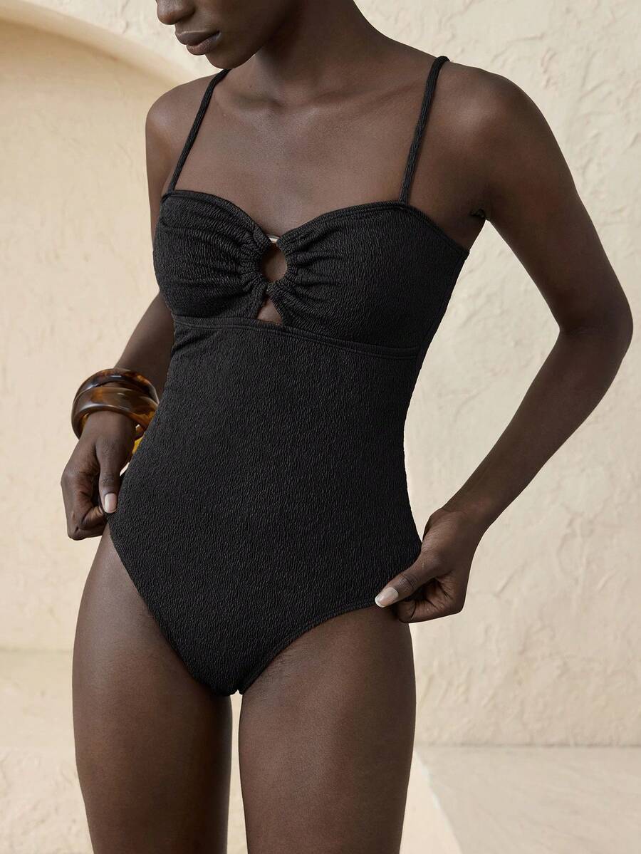 レディース 水着 ワンピース 1個 ブラックリングデコレーション ワンピース水着、スパゲッティストラップ、ミニマリストでファッショ
