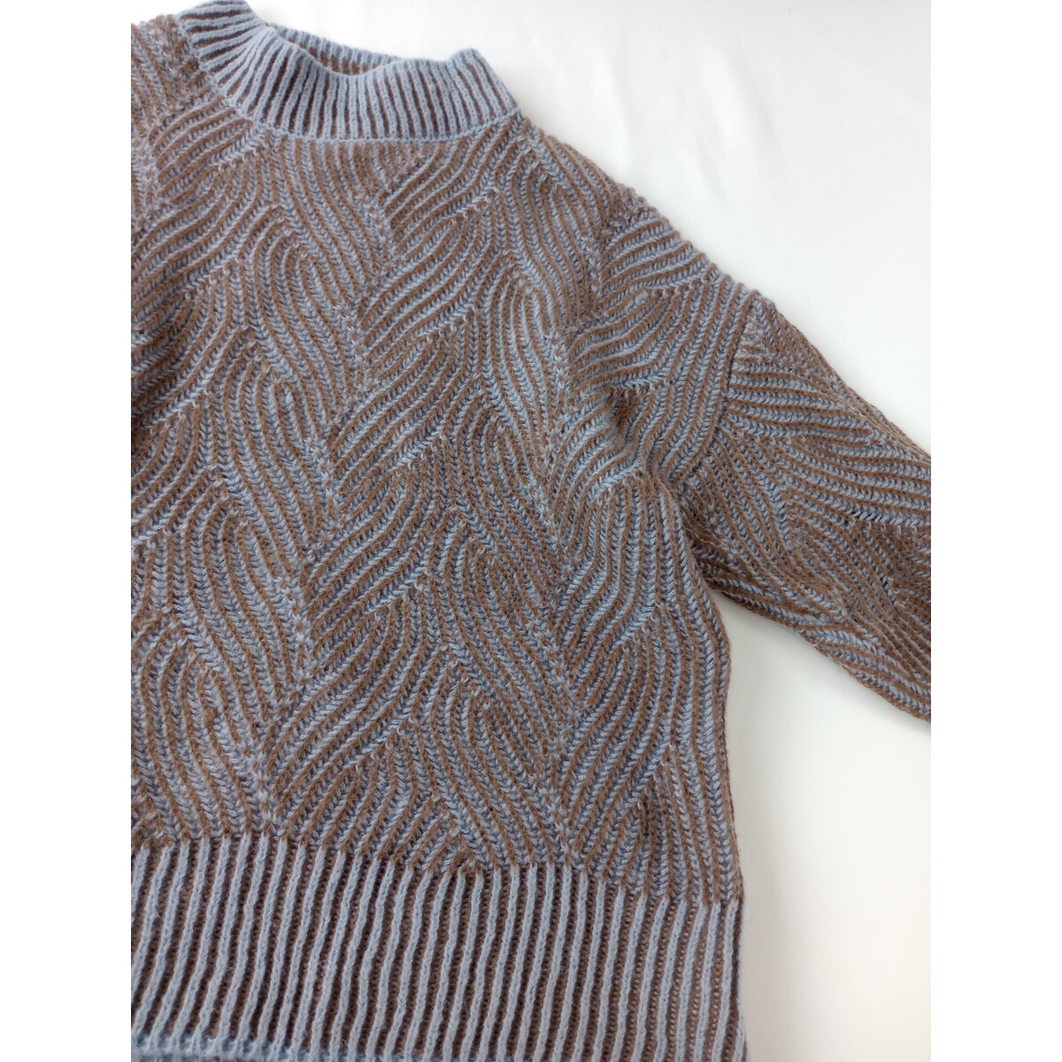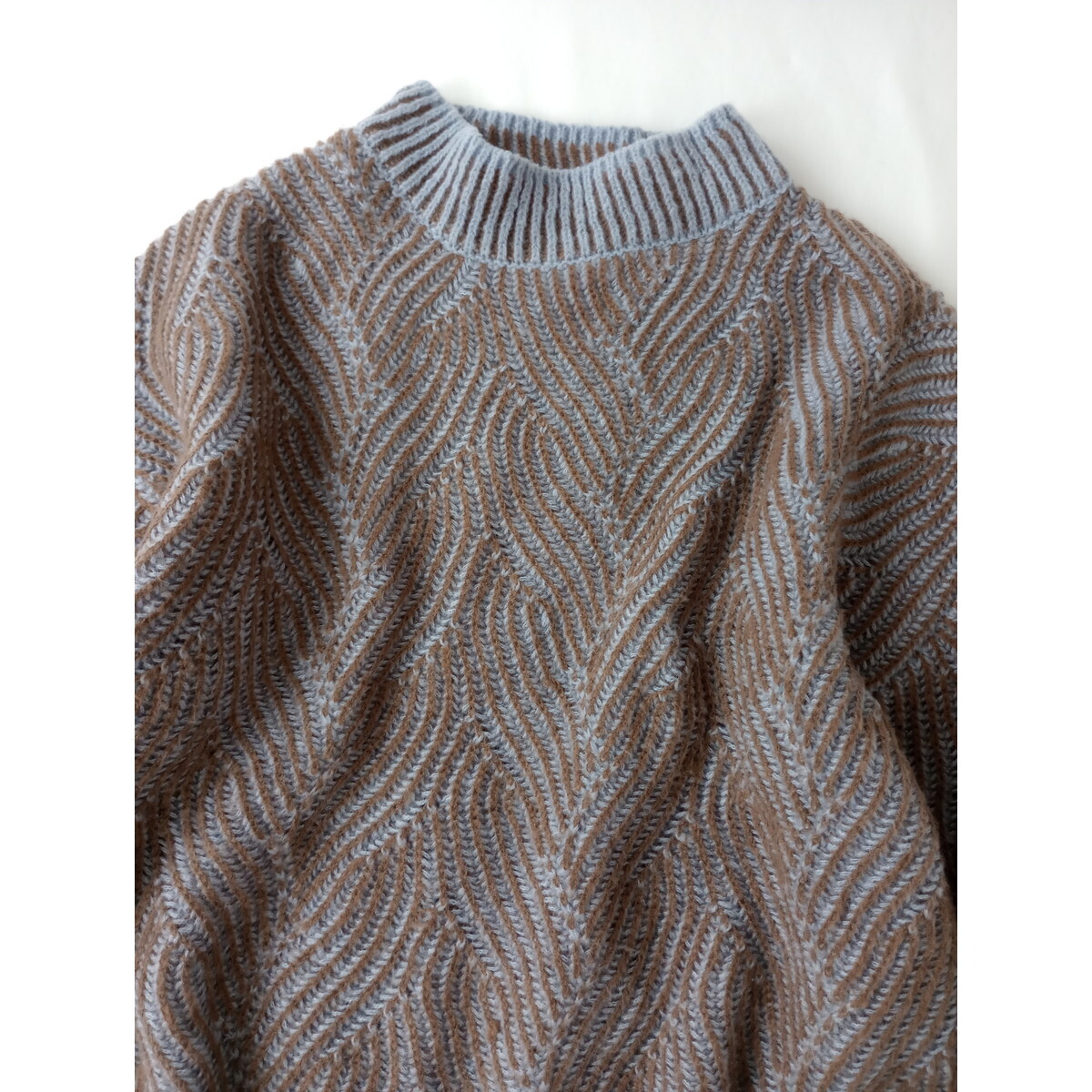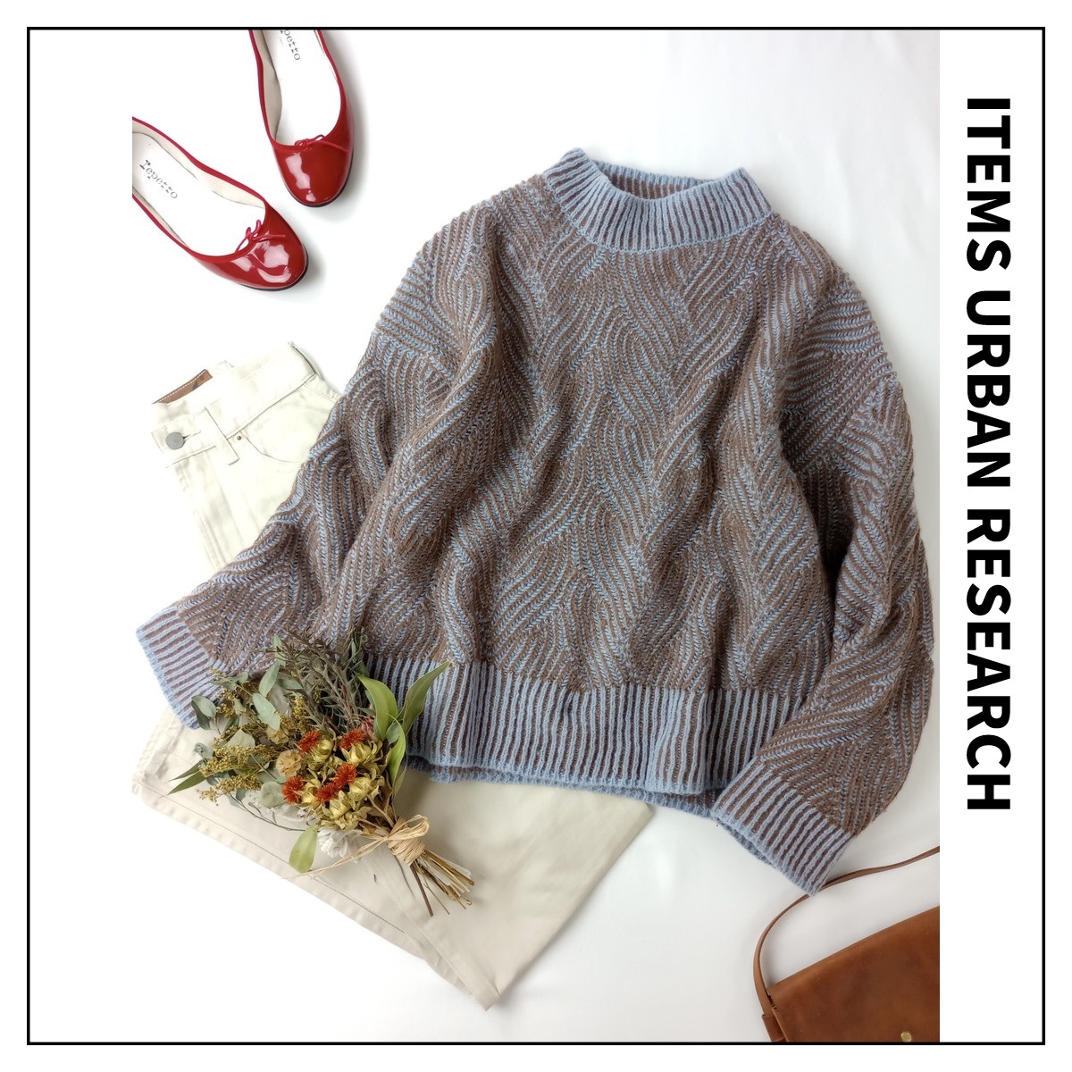 ITEMS URBAN RESEARCH「きっと、大切なのは私らしさ」ジャガード ハイネック ニット プルオーバー 長袖 セーター 水色 ブラウン(5M+5175)