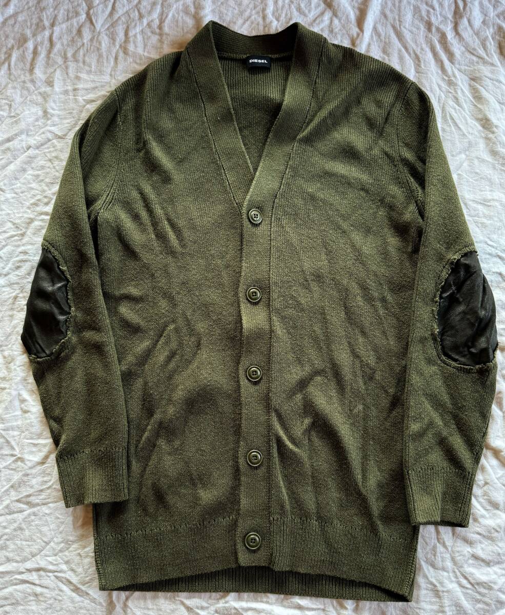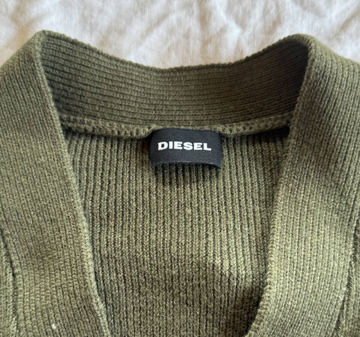 ディーゼル ニット セーター カーディガン モスグリーン XS ウール コットン 厚手 高級タイプ 大きめ