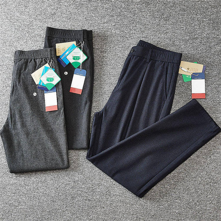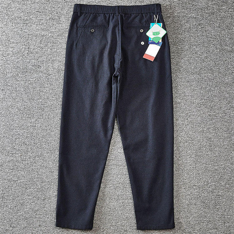 Y6433-M グレー 新品 ウール混 ストレートパンツ 秋冬 防寒 厚手 ノーアイロン ウエストゴム ストレッチ メンズ ビジネス カジュアル