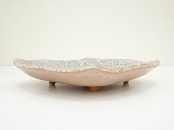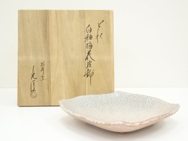 ys7487085; 萩焼 椿秀窯 小野光臣造 白釉梅花皮鉢(共箱)【道】