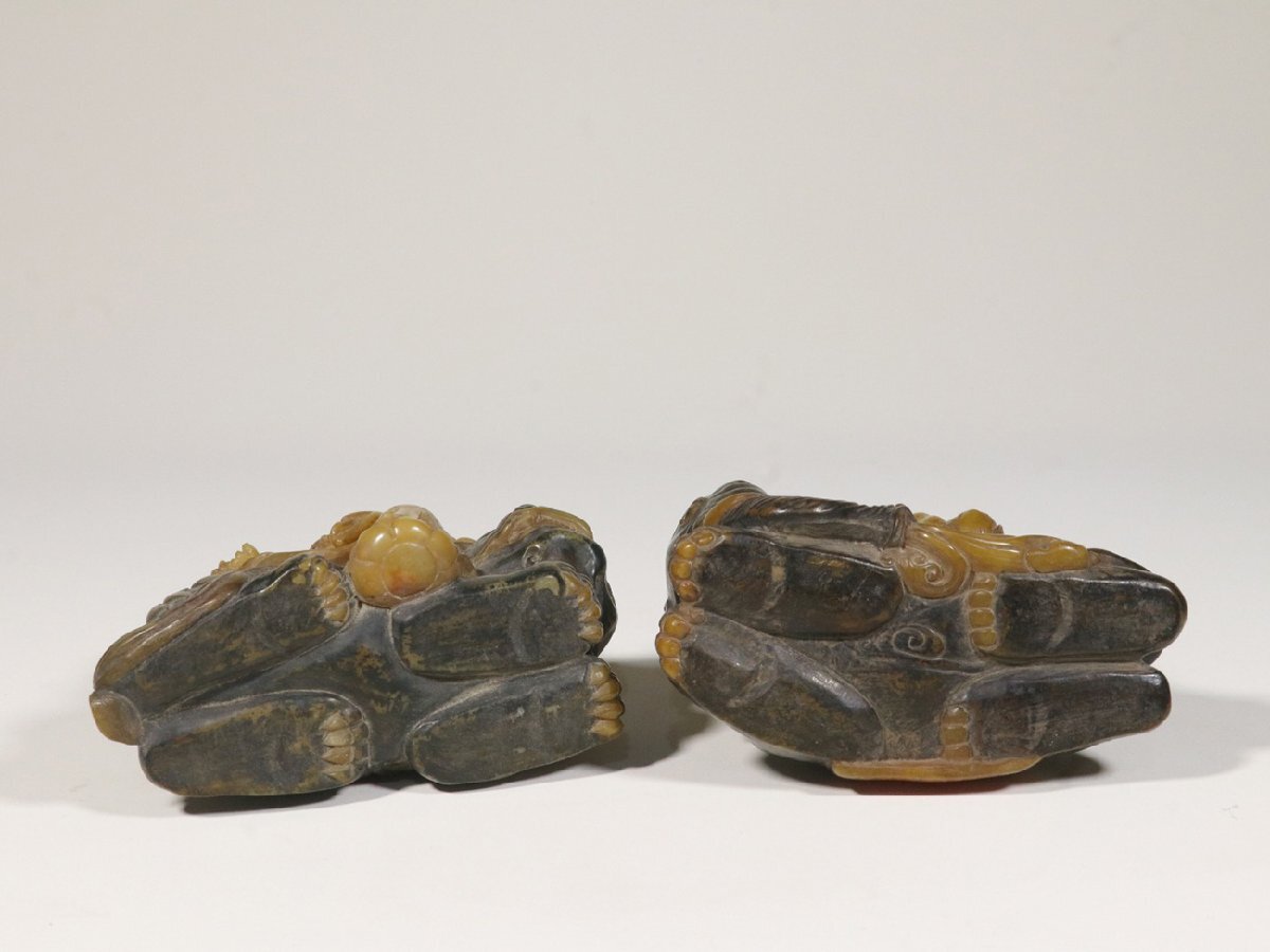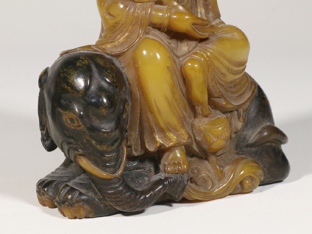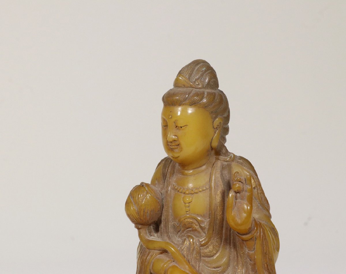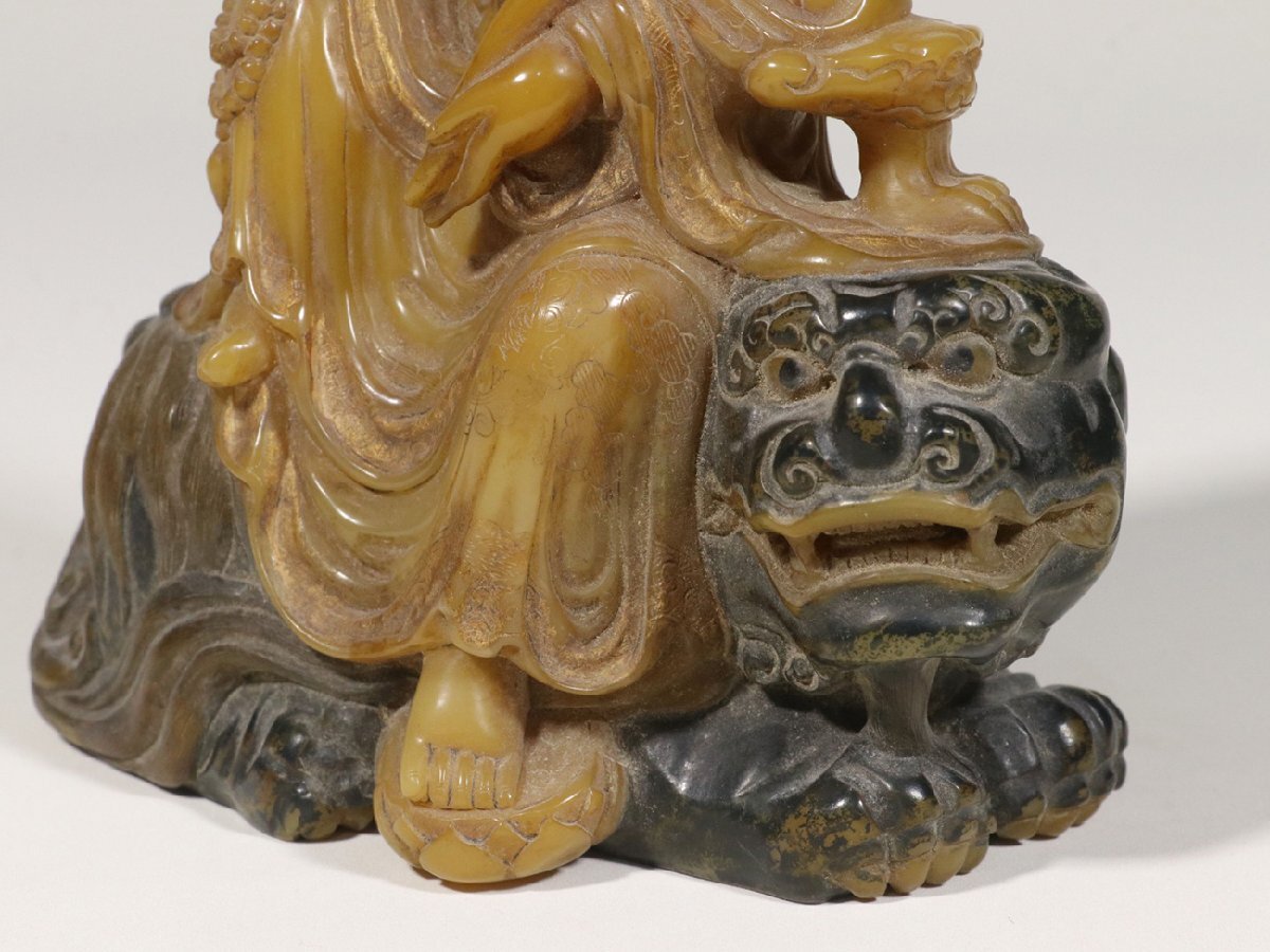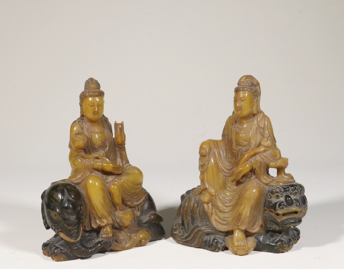 【安】清時代 玉セン銘 寿山田黄石彫 文殊/普賢観音坐像造像一対 共箱 極細工 古置物 古擺件 中国古美術 時代物 221 サイズ(約寸) |