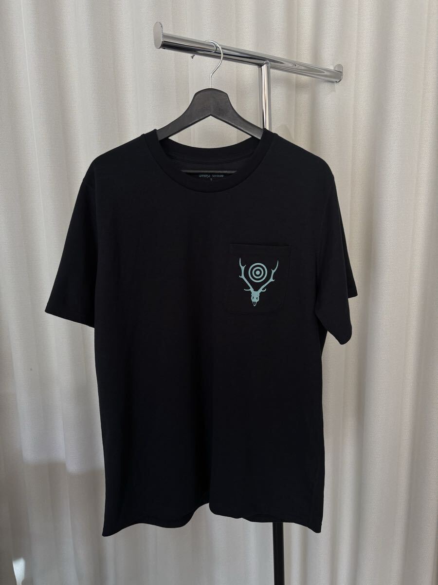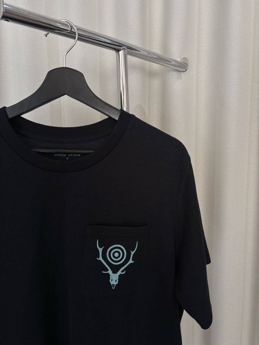 【South2 West8】サウスツーウエストエイト 半袖 Tシャツ ポケット S/S Round Pocket Tee -Circle Horn 定価11,000円 ブラック メンズS