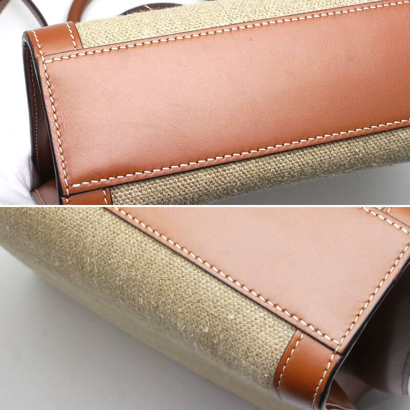 【外側】キャンバスの所々にスレや多少の毛羽立ち、底部レザーに光の反射で分かるスレ傷有り。