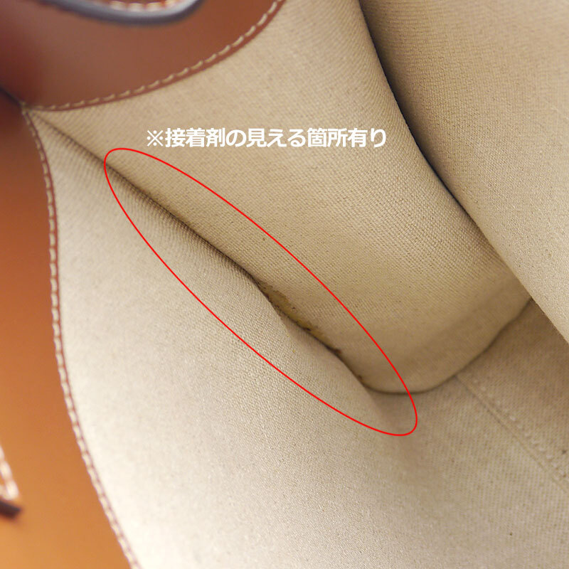 【内側】底部付近に薄汚れ、側面縫合部分に接着剤の見える箇所有り。