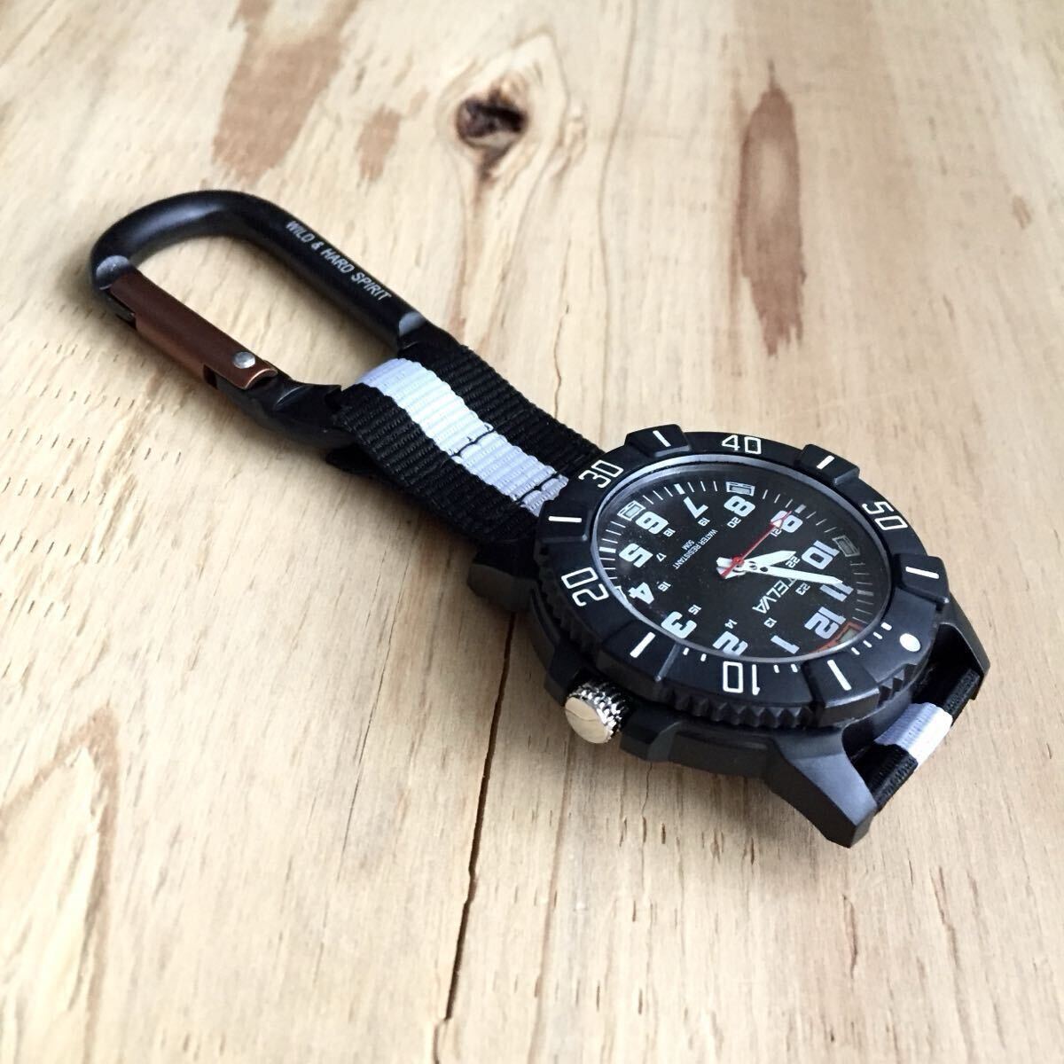 新品同様 BEAMS Analog Hanging Watch ビームス アナログ ハンギングウォッチ カラビナ付 時計 EDC OUTDOOR エブリデイキャリー アウトドア