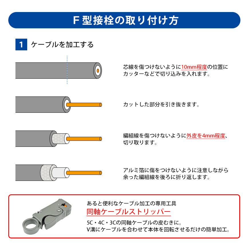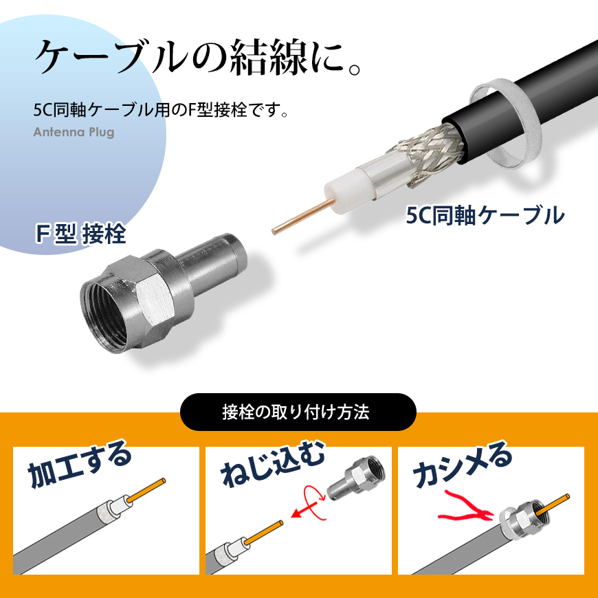 <F型 接栓 5C用 4K8K対応 アンテナケーブル 同軸ケーブル 地上デジタル 地デジ BS CS TV テレビ 10個セット>