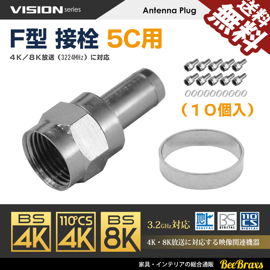 F型 接栓 5C用 10個セット 791021 4K8K対応 アンテナケーブル 同軸ケーブル 地上デジタル 地デジ BS CS TV テレビ ネコポス 送料無料