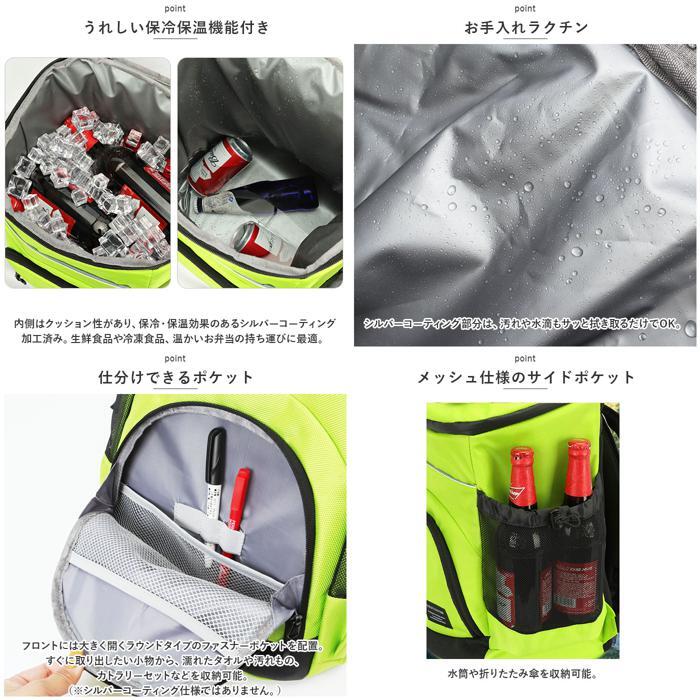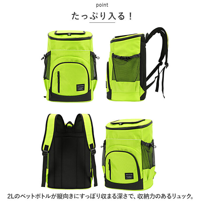 | 商品説明 | ・・キャンプやレジャーにぴったり!保冷保温機能付きリュックが登場。 ・【たっぷり入る!】 ・2Lのペットボトルが縦向きにすっぽり収まる深さで、収納力のあるリュック。 ・【パカッと開くボックス型】 ・上部の開口部はラウンド型に大きく開くダブルファスナー式。さらにそのファスナーを開けずに、面ファスナーを開けて中身を取り出すことも可能。 ・【うれしい保冷保温機能付き】 ・内側はクッション性があり、保冷・保温効果のあるシルバーコーティング加工済み。生鮮食品や冷凍食品、温かいお弁当の持ち運びに最適。 ・【底マチ設計】 ・ランチボックスやタッパーも、安定した状態をキープ◎ ・【仕分けできるポケット】 ・フロントには大きく開くラウンドタイプのファスナーポケットを配置。すぐに取り出したい小物から、濡れたタオルや汚れもの、カトラリーセットなどを収納可能。(※シルバーコーティング仕様ではありません。) ・【お手入れラクチン】 ・シルバーコーティング部分は、汚れや水滴もサッと拭き取るだけでOK。 ・【メッシュ仕様のサイドポケット】 ・水筒や折りたたみ傘を収納可能。 ・【背負い心地快適】 ・背面&調節可能なショルダーベルトはムレにくいメッシュ素材。程よいクッション性もあり、体にかかる負担を軽減。 ・【ポケット仕様】 ・フロント上部:オープンポケット×1 ・フロント下部:ラウンドファスナー内部にメッシュポケット×2、ペン差し×3、外側に縦型ファスナーポケット×1 ・サイド:メッシュポケット×2 |