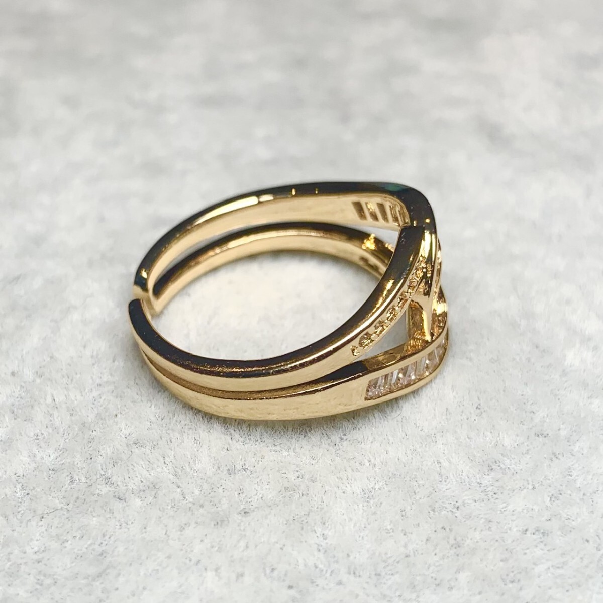 *無限を象徴するデザインに、CZダイヤが繊細な輝きを放つゴールドリング。エレガントな曲線が指先を美しく彩り、洗練された印象を演出します。