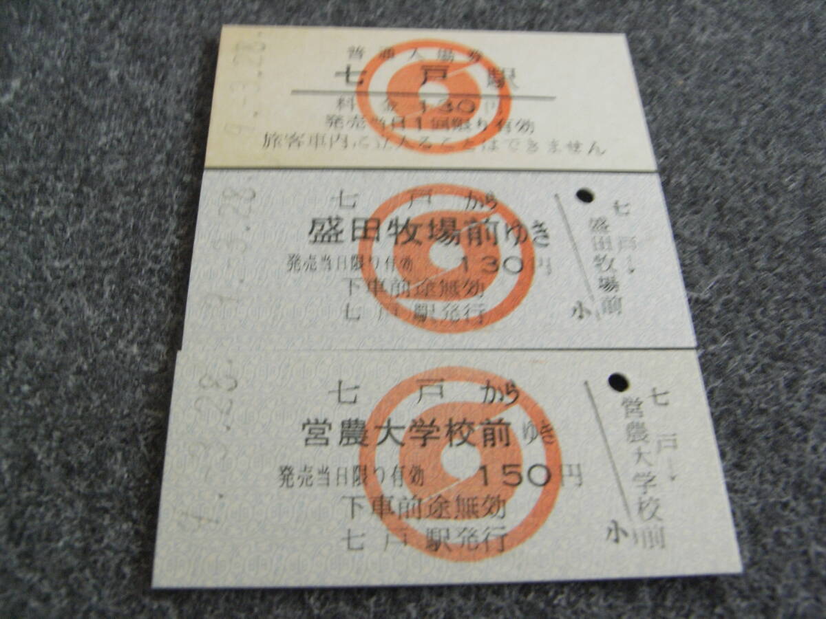 3枚/南部縦貫鉄道 七戸駅 普通入場券/硬券乗車券 七戸から営農大学校前ゆき・七戸から盛田牧場前 平成9年3月28日 合計3枚 廃線