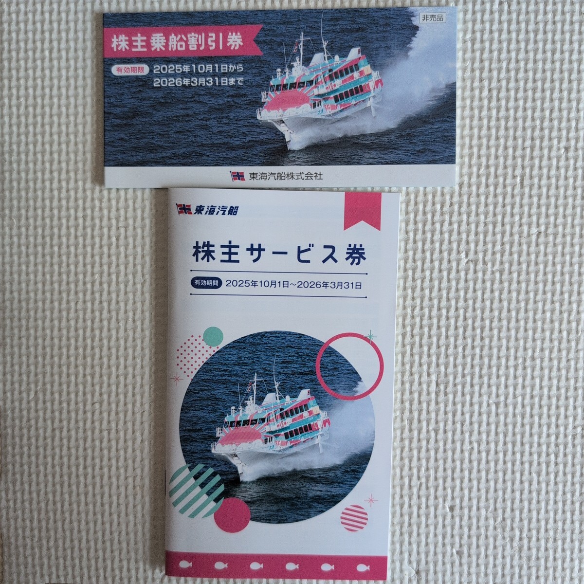 東海汽船株主優待券 ★ 乗船割引券10枚+株主サービス券 2025年10月1日から2026年1月31日まで有効です。