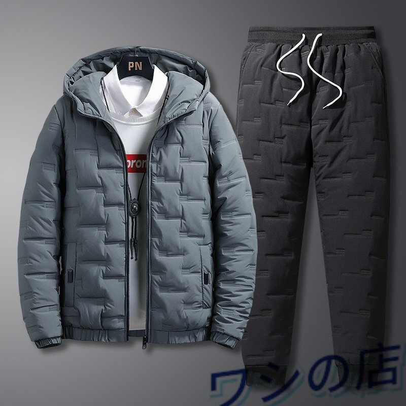 PH-3178 セットアップ メンズ 上下セット 中綿ジャケット 厚手パンツ 無地 スポーツウェア スウェット上下セット 防寒 [M~5XL]選択可