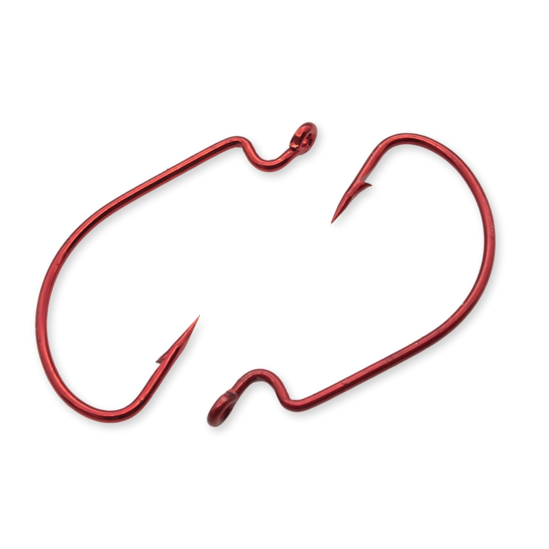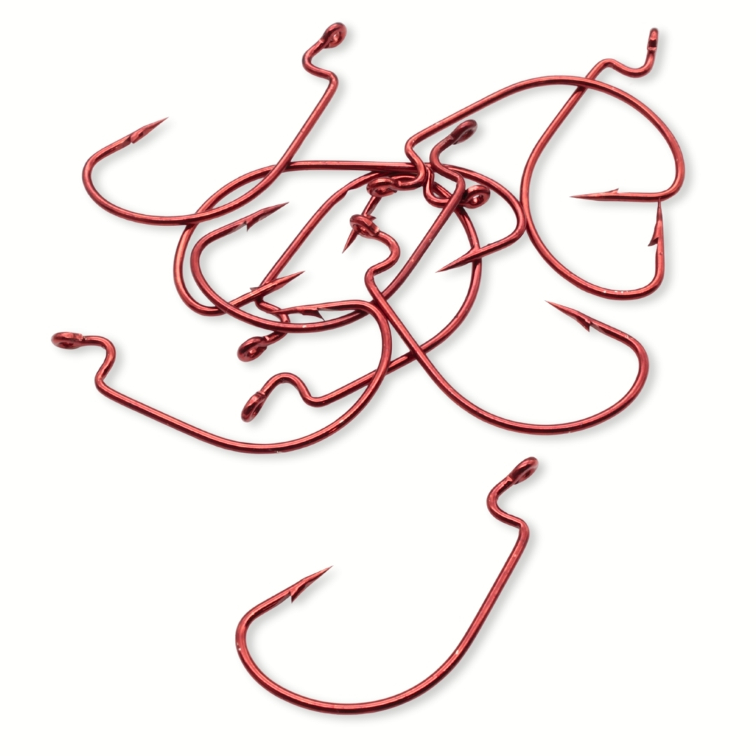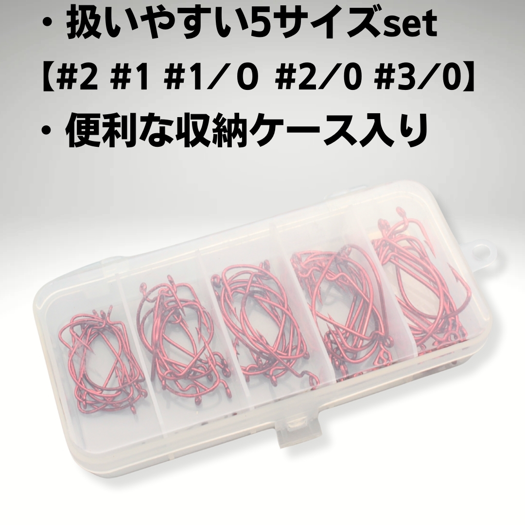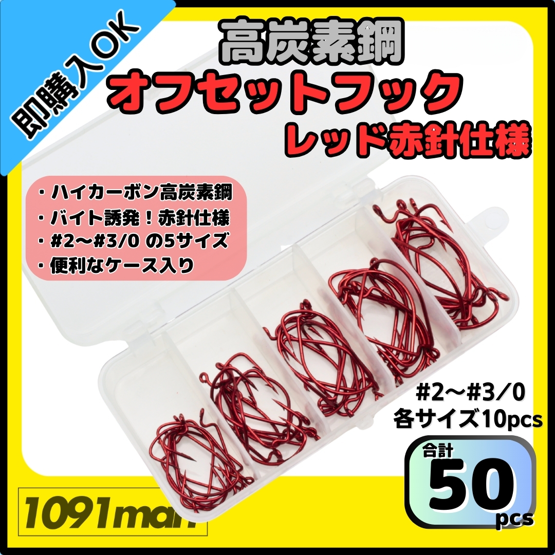 高炭素鋼 レッドオフセットフック 50本セット ケース入り 赤針 レッドコーティング仕様 ワームフック ソルト対応 テキサスリグ【1091mart】