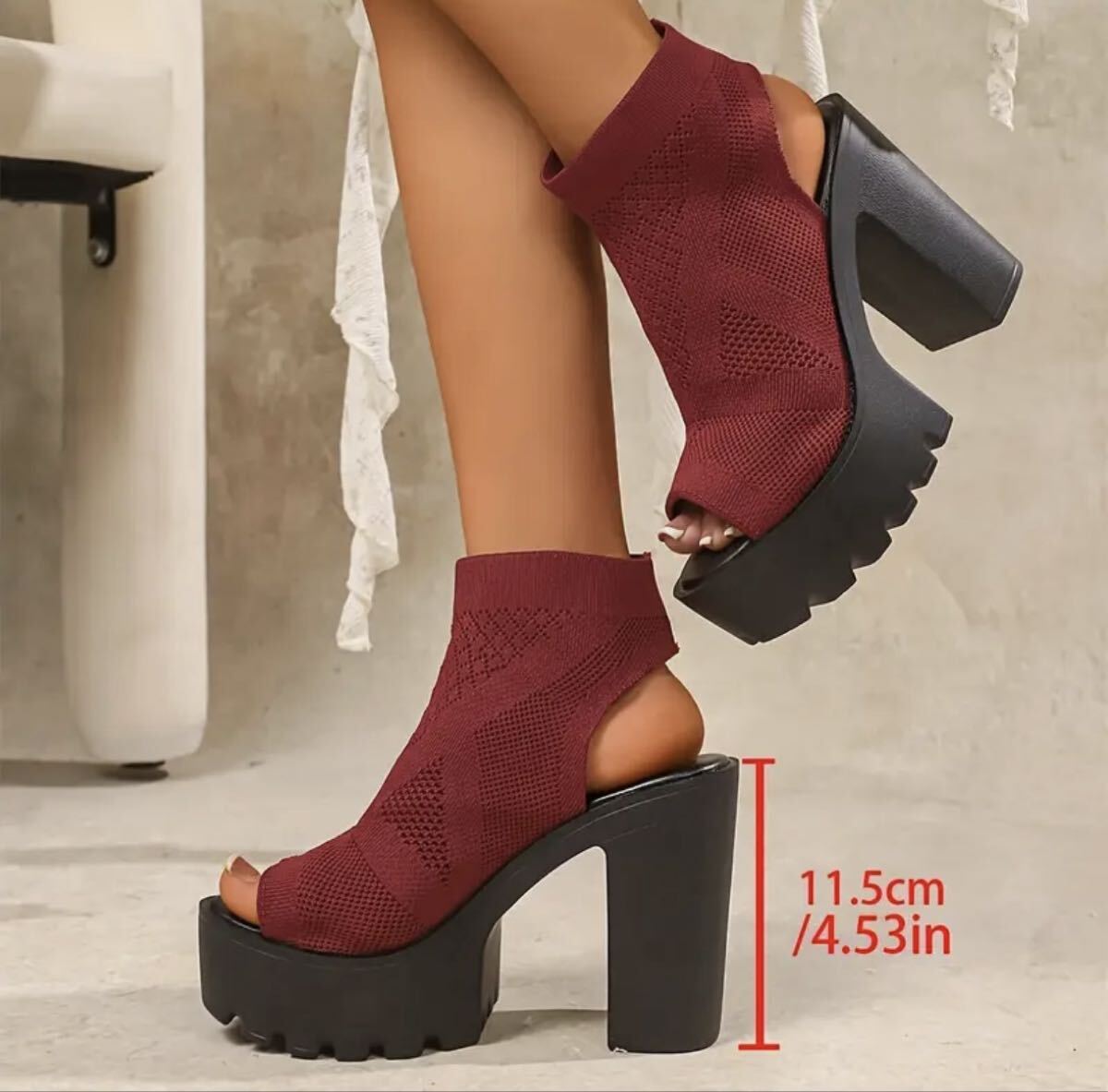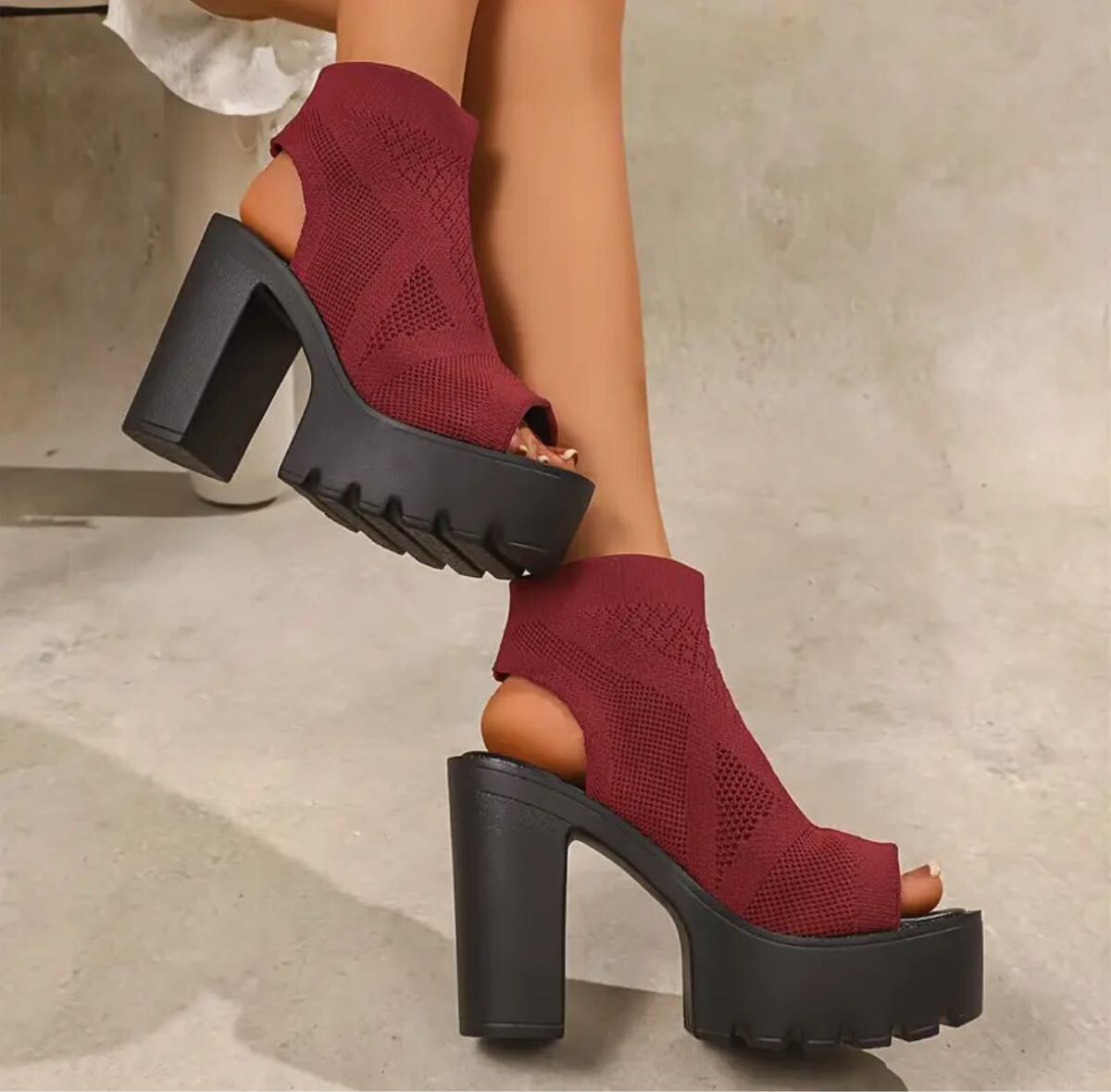 軽量ながら安定感のある厚底ヒールで、高さを感じさせない快適な歩行を実現。肌に馴染む柔らかい素材を使用し、長時間の着用でも疲れにくいのが特徴です。通気性の良いニット素材が蒸れを防ぎ、快適な履き心地を保ちます。