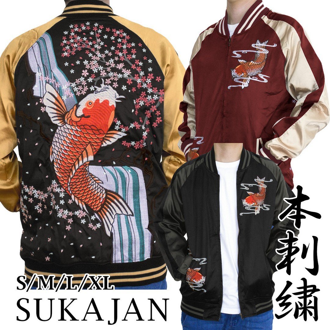 【CTskjcLRD】送料無料 スカジャン レッド サイズ:L 鯉 コイ
