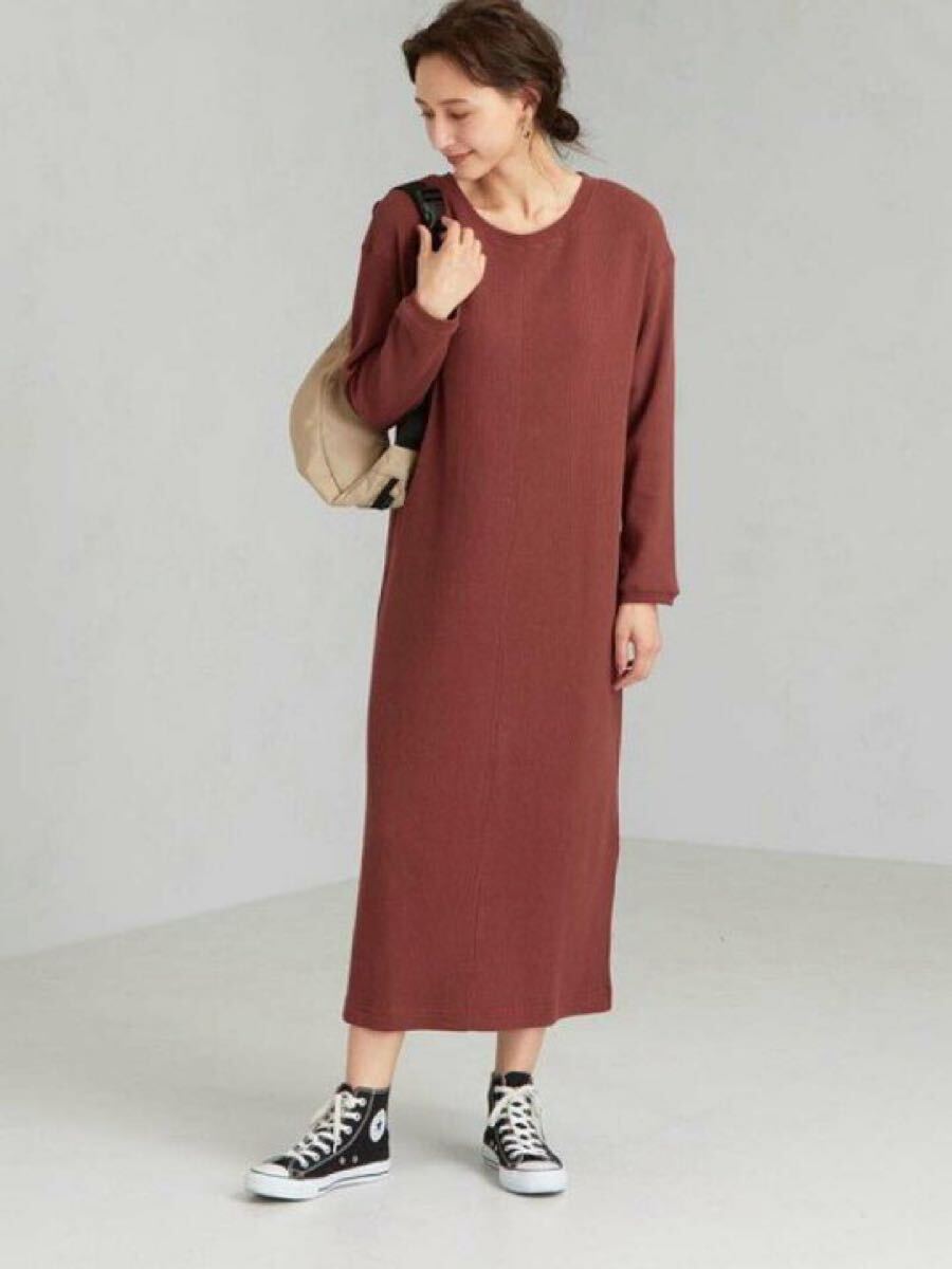 ゆるっとしたサイズ感がカジュアルな雰囲気のマキシワンピース。膨らみのあるワッフル編みカットソー素材を使用しています。フロント・バック共にセンター切り替え&ステッチデザインにしアクセントをプラス♪袖口は細めのリブ素材ですっきりと仕上げてました。1枚での着用はもちろん、ボトムとのレイヤードスタイルも楽しめます!