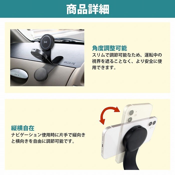 【送料無料】車載 15W 高速 ワイヤレス充電器 ダッシュボード 取り付け 磁気 マグネット 固定 充電 車載ホルダー 車用 急速充電 iphone