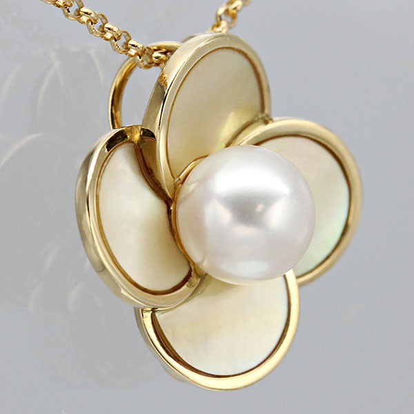 タサキ TASAKI フラワーモチーフ K18YG パール シェル ネックレス兼ブローチ ゴールド750 7.56g 田崎真珠 花 ブランド 女性 プレゼント