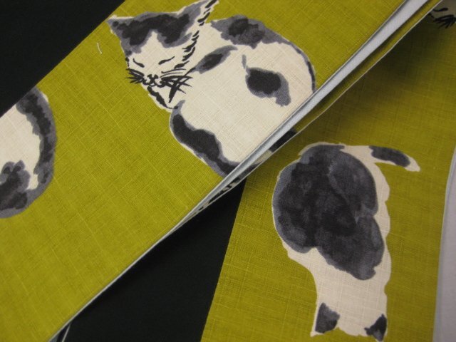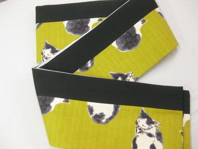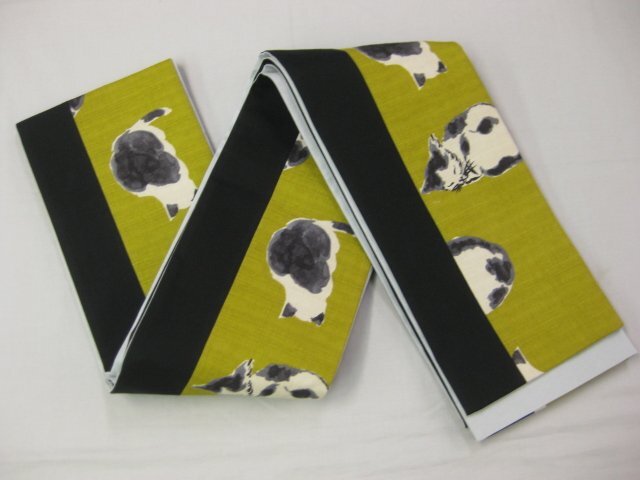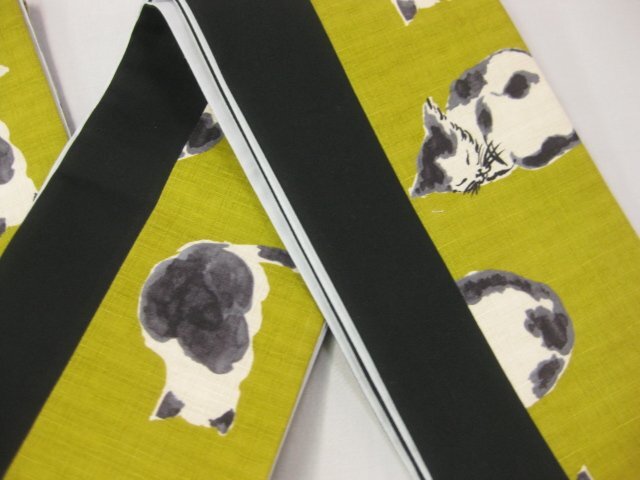 ■■レトロな感覚のねこ柄細帯(半幅帯)です■■