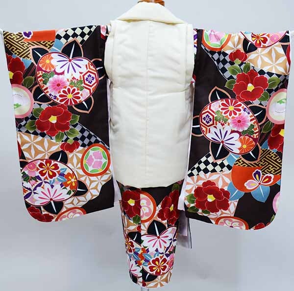 | サイズ | ■着物 コート丈49cm 裄丈42cm(3cmの上げ、6cmのばすことが可能) 袖丈57cm 着物丈77cm(7cmの上げ、14cm伸ばすことが可能) ■草履18cm(フリーサイズ) 適合身長83cm~105cm ※身長87cm~96cmであれば特に直さずともこのままでご着用いただけるかと思います ※着丈=背中首のゴリゴリ部分から、足くるぶしまでの長さ ※裄丈=腕を斜め45度下げた状態で、背中首ゴリゴリ部分から、肩上を通して、手くるぶしまでの長さ ※はじめから肩上げ、腰上げがとられているので解いて数センチ伸ばす(丈出し)ことも可能です。 |