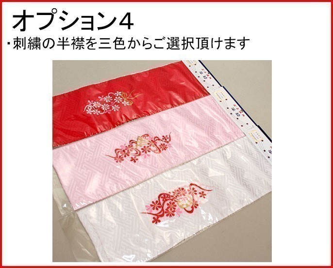 | 半襟 足袋 三尺帯 腰紐 かかと留め 着付説明 | ◎刺繍の半襟を必要なお客様は、赤、白、ピンクの三色から別途¥730円で選ぶことができます。 ~半衿の縫いつけについて~ ※半衿をご要望でお仕立て(肩上げ、腰上げ)を依頼されている場合、 工賃無償で長襦袢に半襟縫いつけさせていただきます。 半衿縫い付けのみも工賃¥680で承ります。 ■足袋は2種類からご用意できます。 1.ソックスタイプの足袋:別途¥580 サイズ一覧 13~14cm 15~16cm 2.こはぜ付本格足袋(日本製):別途¥1500 サイズ一覧 13~14cm 15~16cm ■三尺(兵児帯)はピンク、赤、黄色から選べて別途¥1500 ■腰紐は別途1本240円 ■かかと留め(赤)は2組セットで別途¥580 ■三歳祝着の着付けは簡単ですがご要望のお客様には着付説明をメールで資料 をご案内いたします。(無料) 着付けサイト、動画をご紹介いたします。 ※ご希望のお客様は、「フォーム備考欄」「メール(aji_net@khaki.plala.or.jp)」「お電話」「FAX」いずれかの方法でご連絡ください。 |