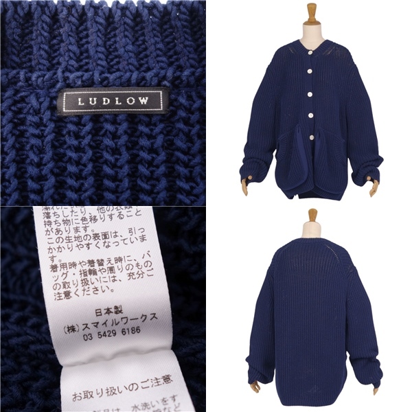 | 極美品 ラドロー LUDLOW カーディガン 24SS ニット ロングスリーブ コットン トップス LD24S-KT001 Free ネイビー |