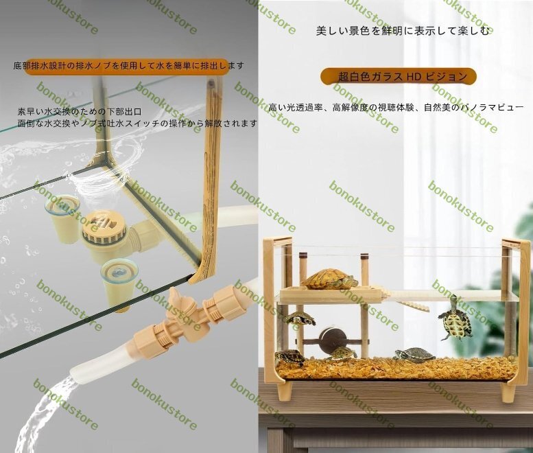 【商品詳細】★状態:新品未使用【高精細透明ガラス】:水陸両用テラリウムオープンガラス水族館、透明なデザイン、ペットのあらゆる動きを時間内に観察するのに便利、透明は優れた観察効果と硬度を提供し、ペットのカメを観察および観察するのに最適です。【広いスペース】: