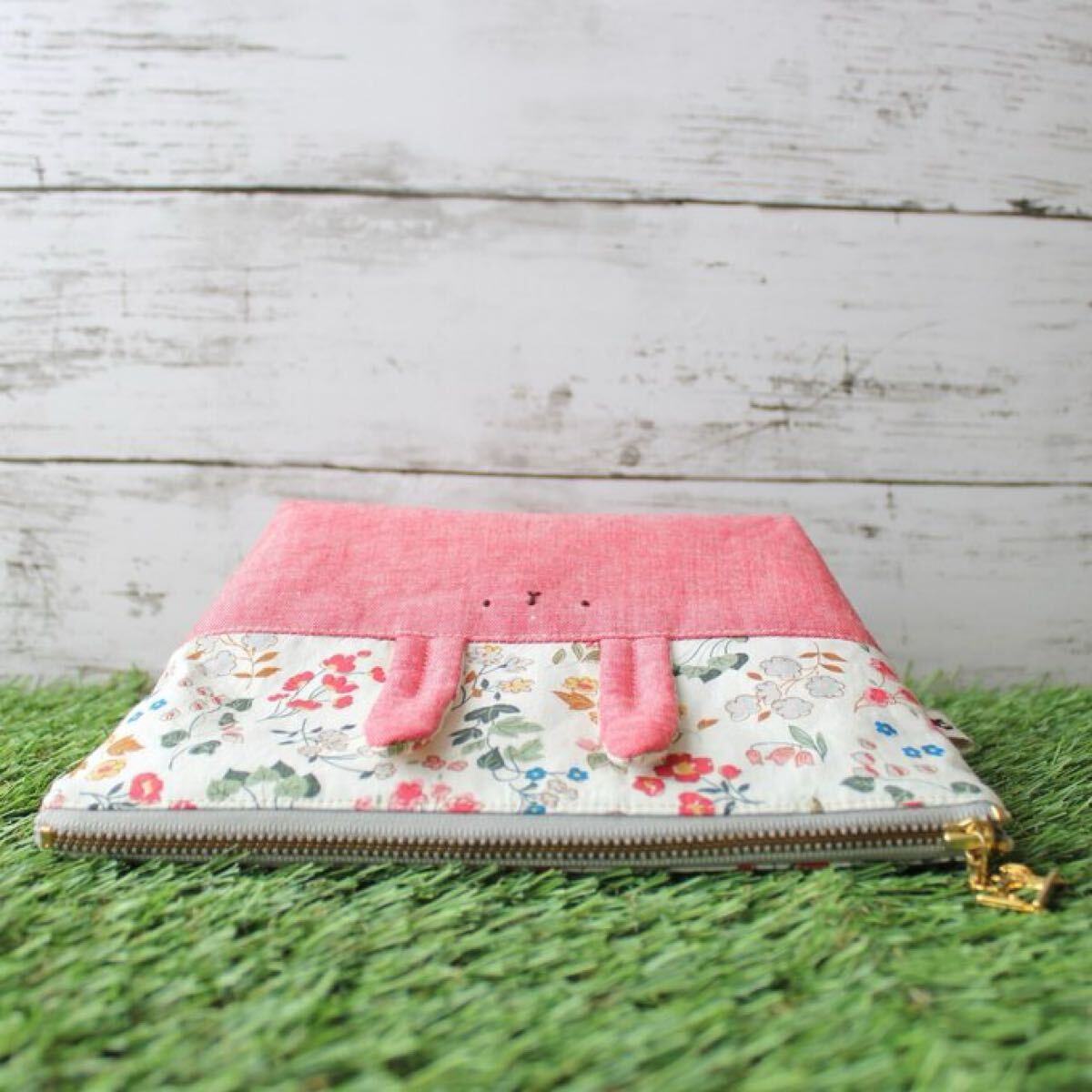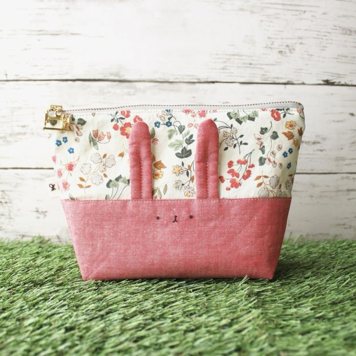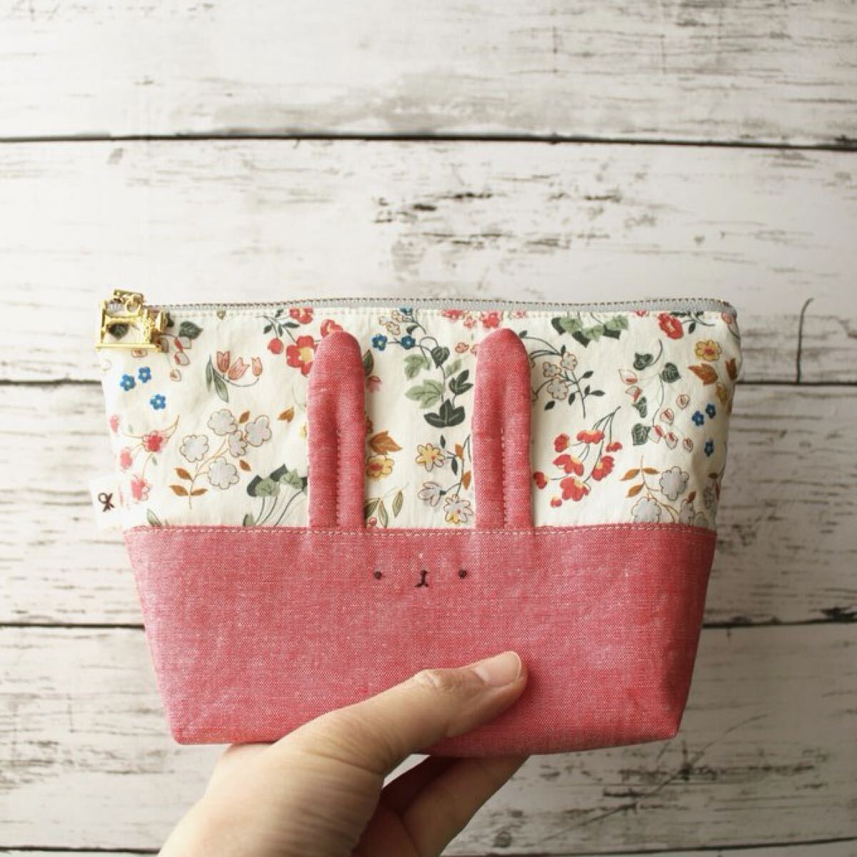 <布製ファスナーポーチ(うさぎモチーフ)>