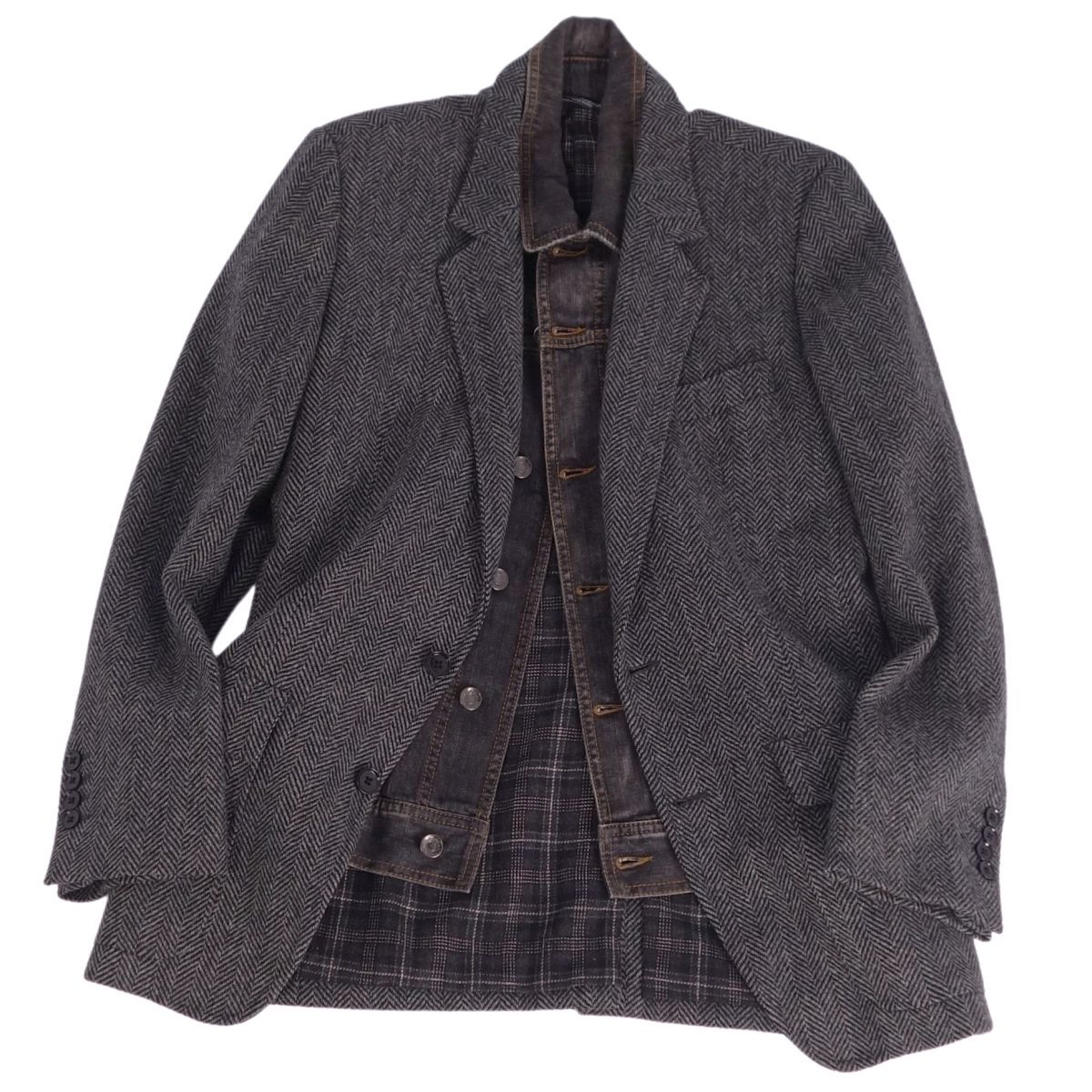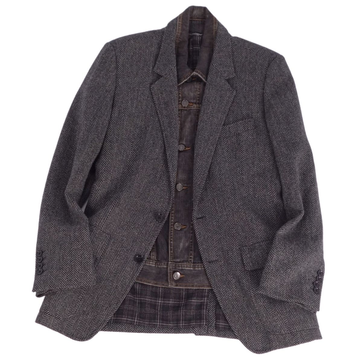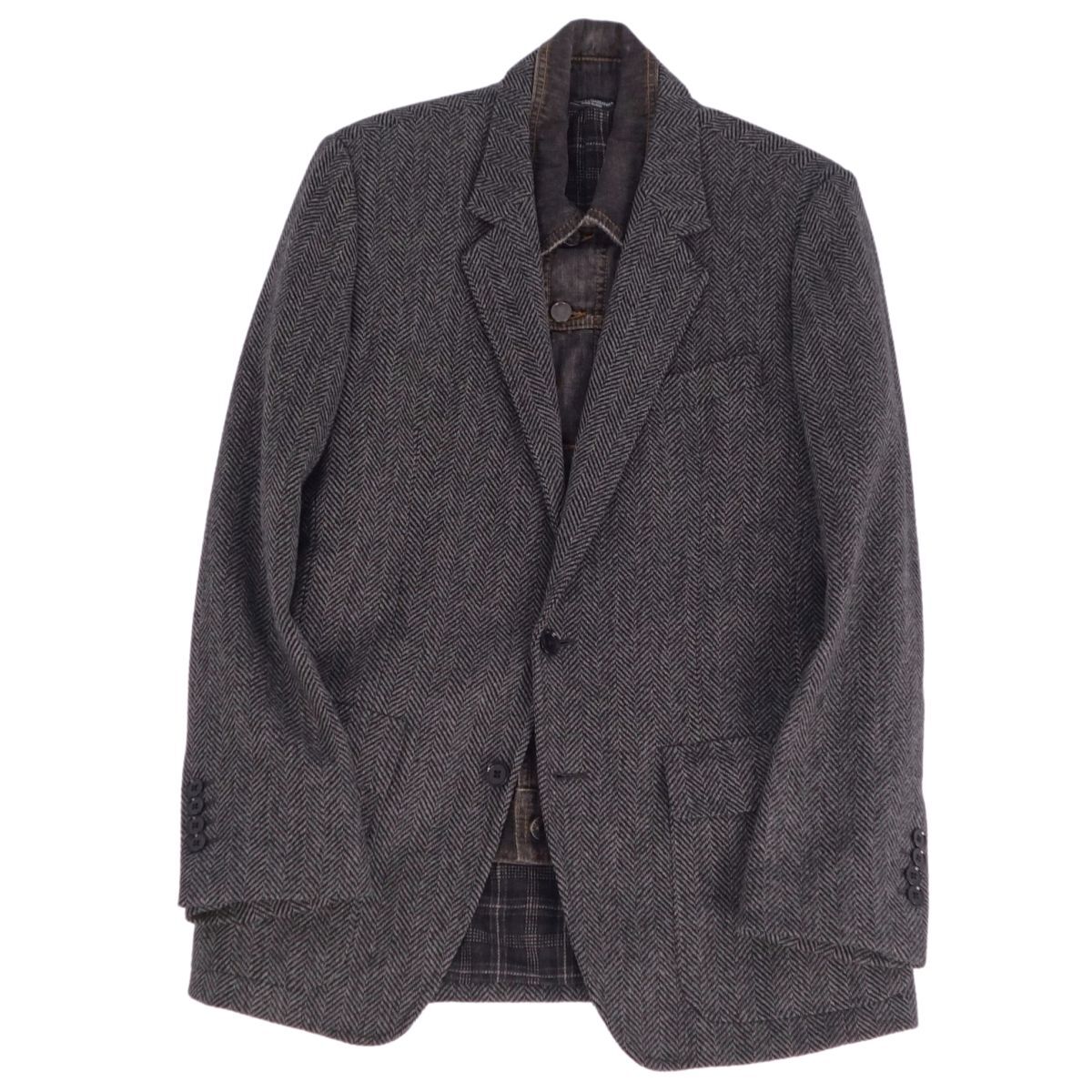 美品 ドルチェ&ガッバーナ DOLCE&GABBANA ジャケット テーラード デニムレイヤード ウール ツイード メンズ 46 グレー |