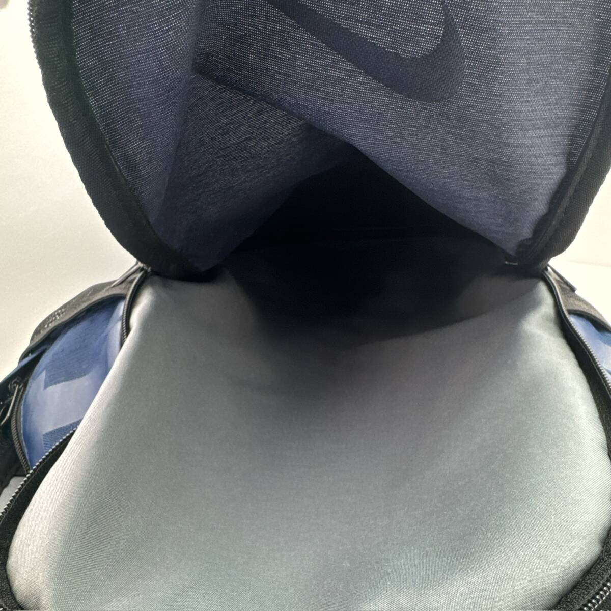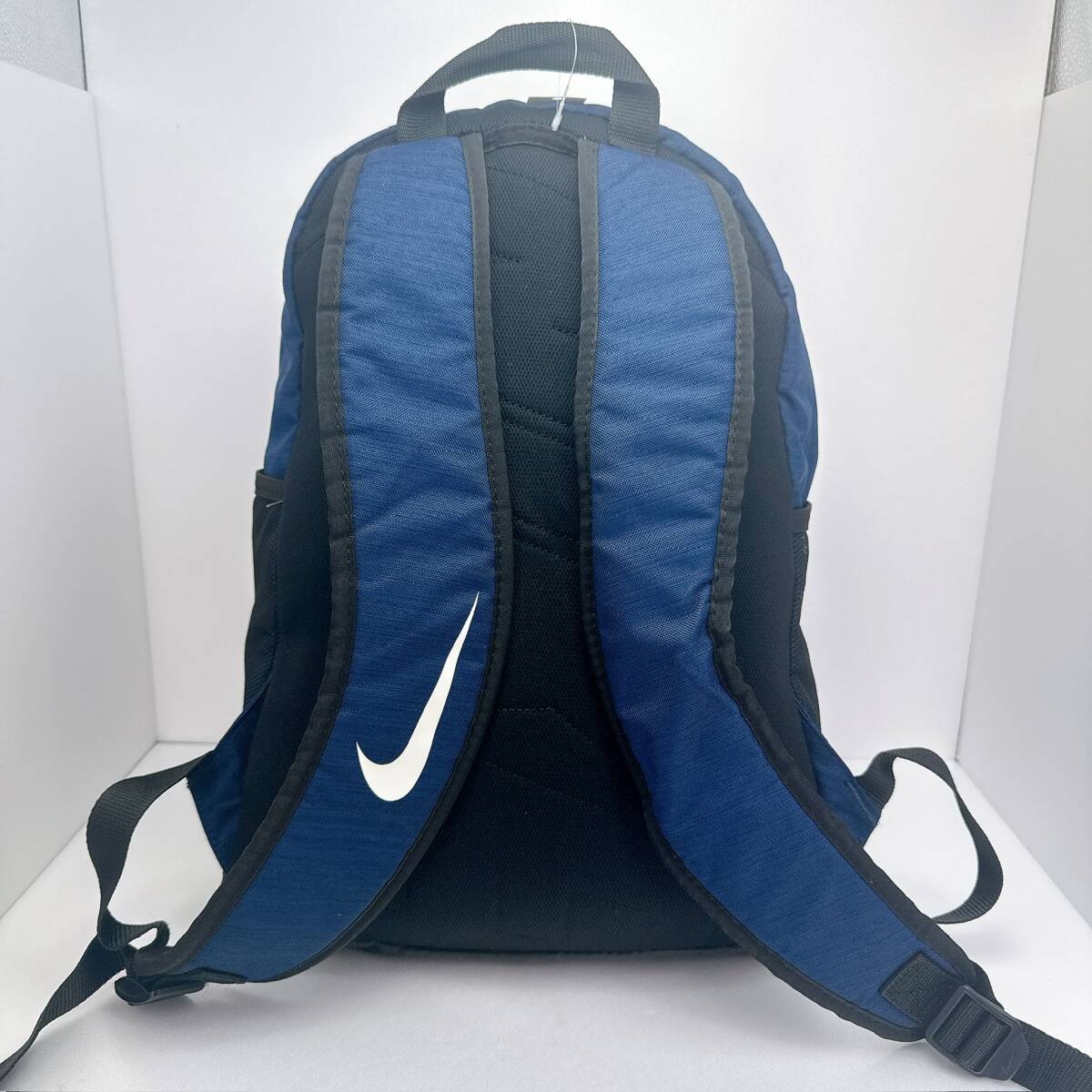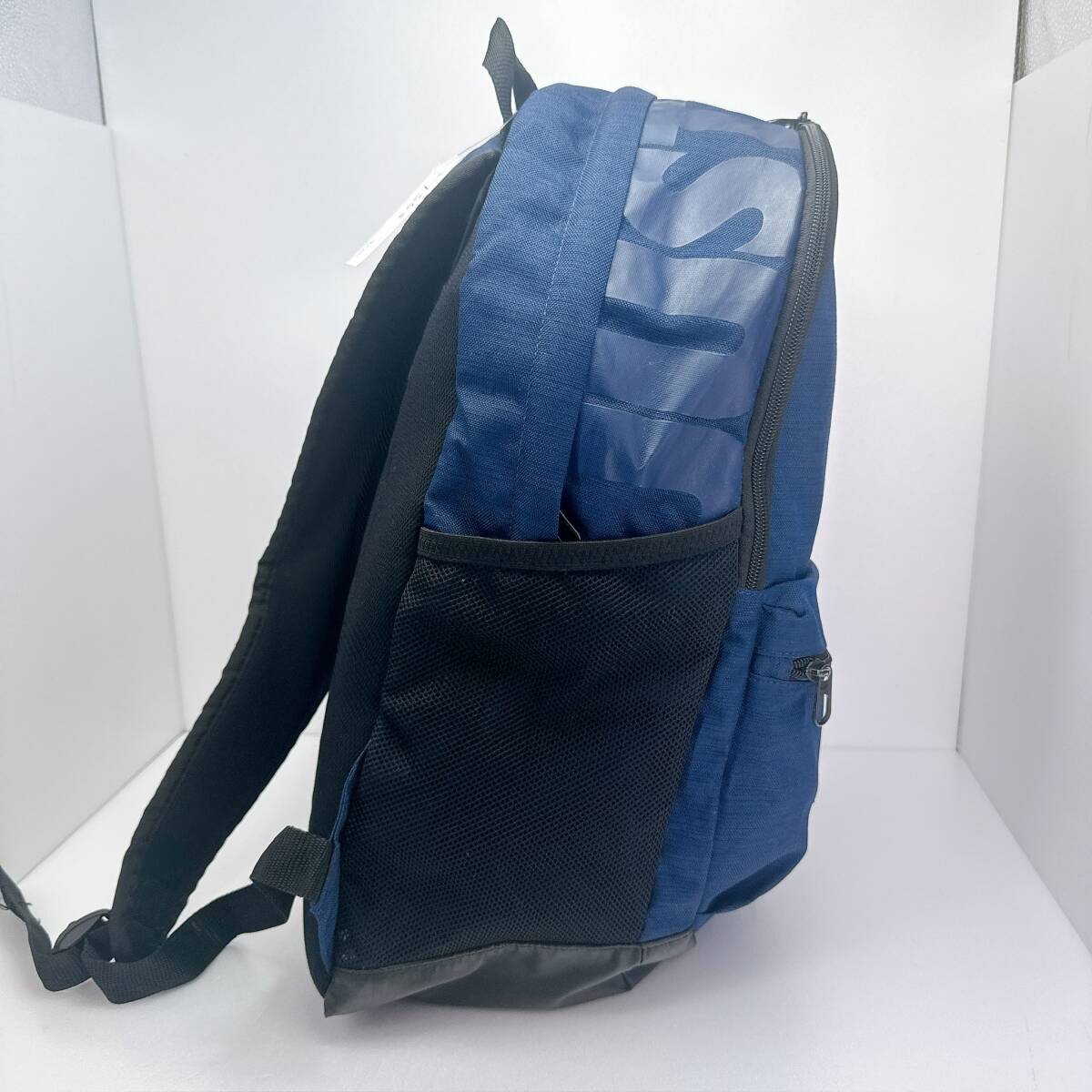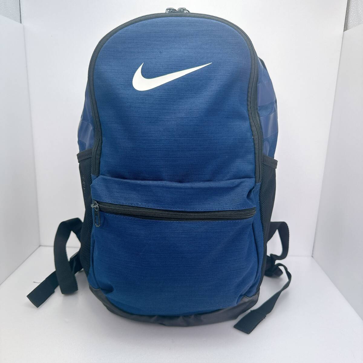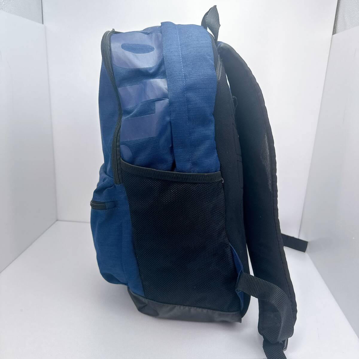 1353○ NIKE ナイキ リュックサック デイパック ユニセックス メンズ キャンバス ブルー 青 ブラック 黒 白文字 メッシュ ファスナー
