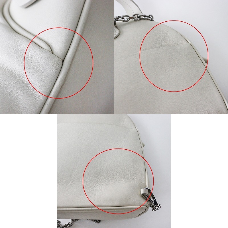 底面に汚れ、金具周り・外側端に黒ずみ、外側後ろにやや擦れ跡が見受けられます。