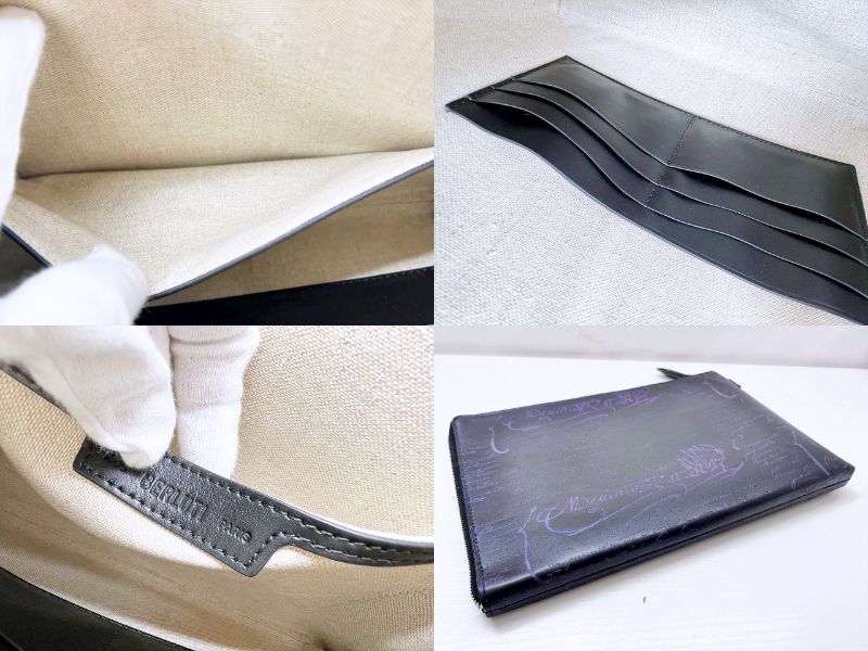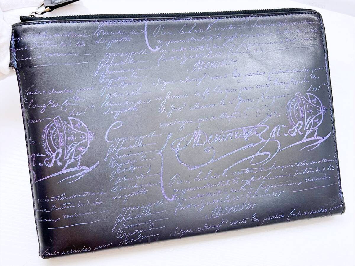 美品 Berluti ベルルッティ ニノGM スクリットレザー クラッチバッグ ネログリジオ パープル NINO_GM_NEO-V2