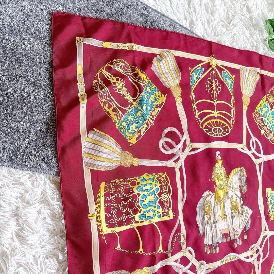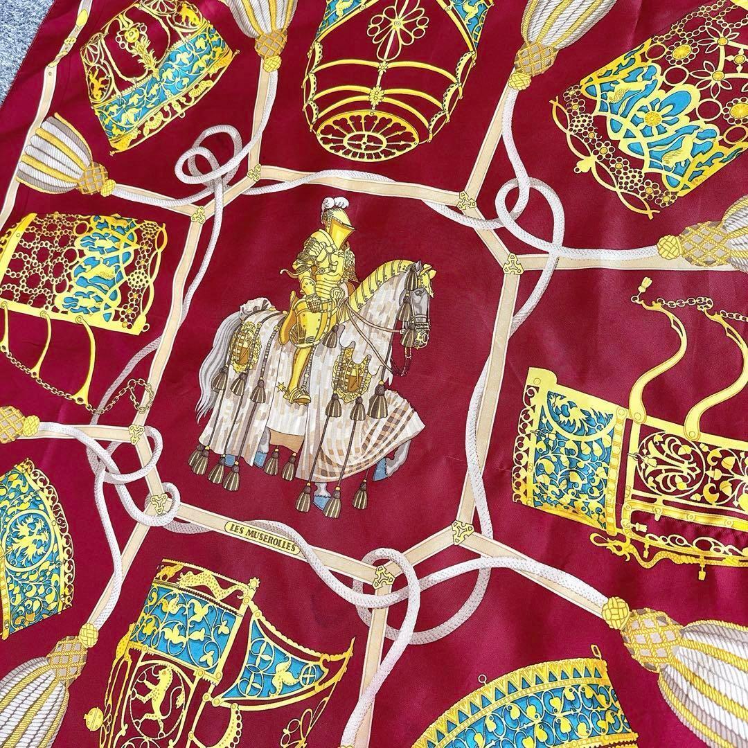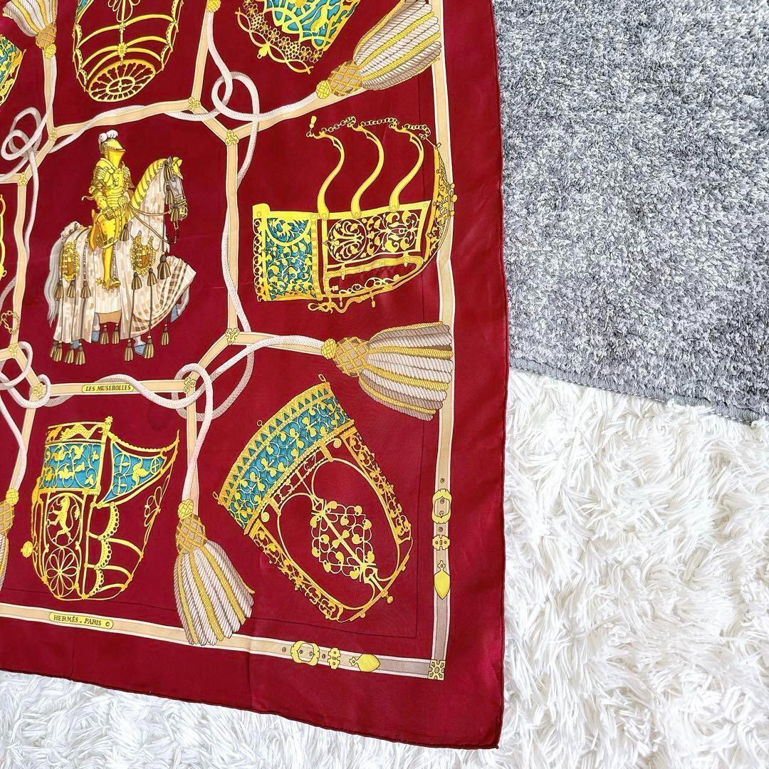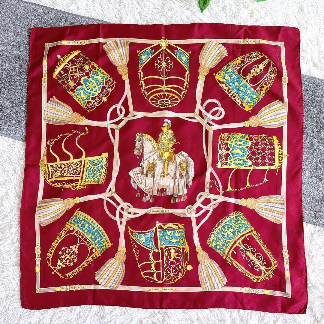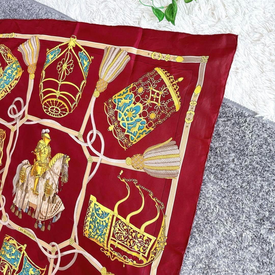 エルメス 大判 スカーフ カレ CASQUES et PLUMETS シルク 面貌のない兜 シルク HERMES