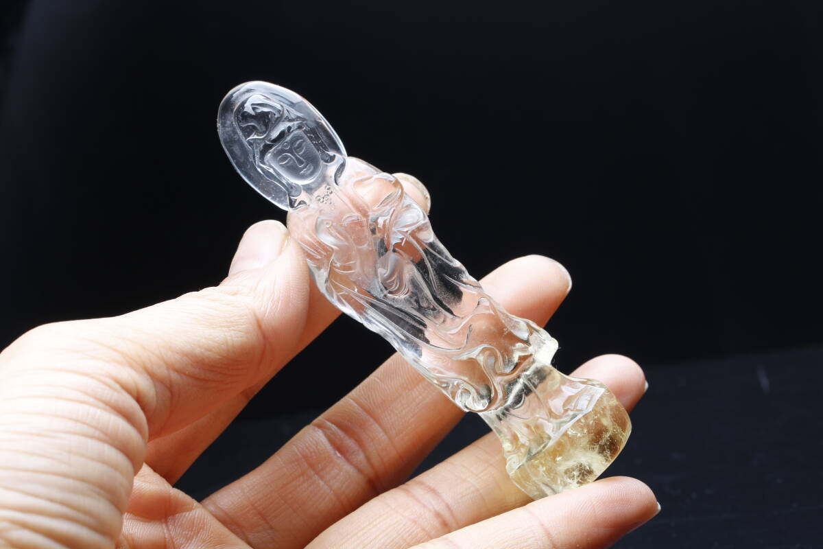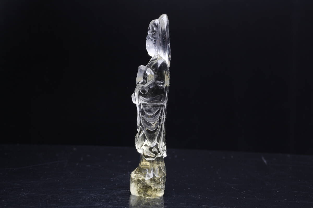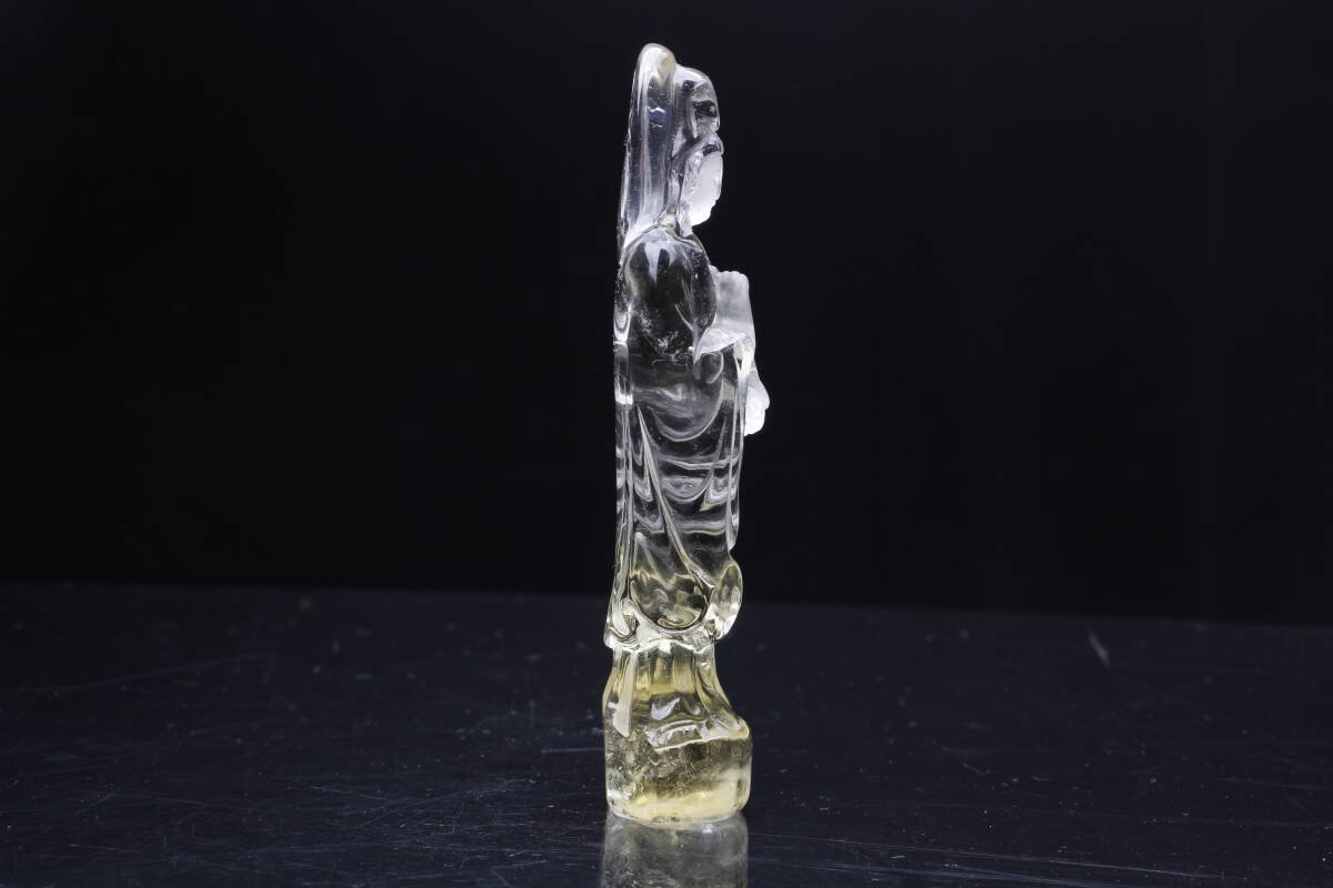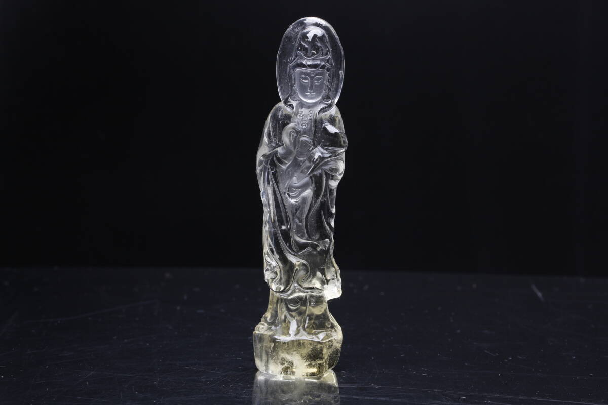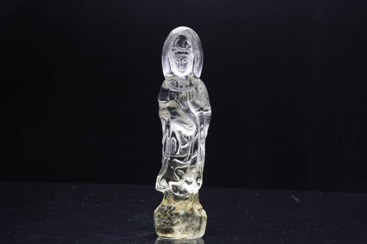 天然シトリン彫 観音さま置物・仏教美術仏様 観世音菩薩様 パワーストーン ブラジル産 天然石 開運 仕事 幸運 高さ約89.2mm【hgy-59】 | |