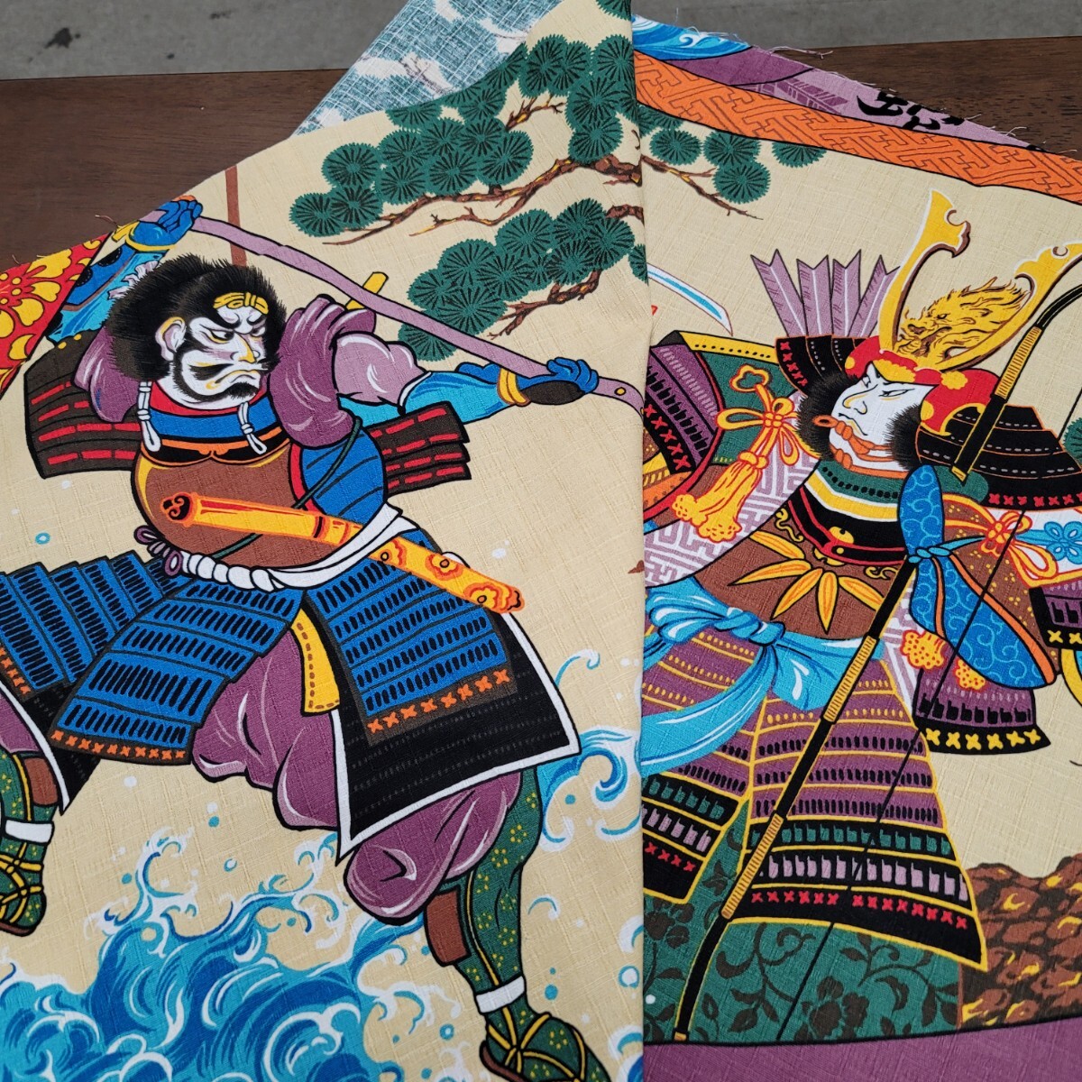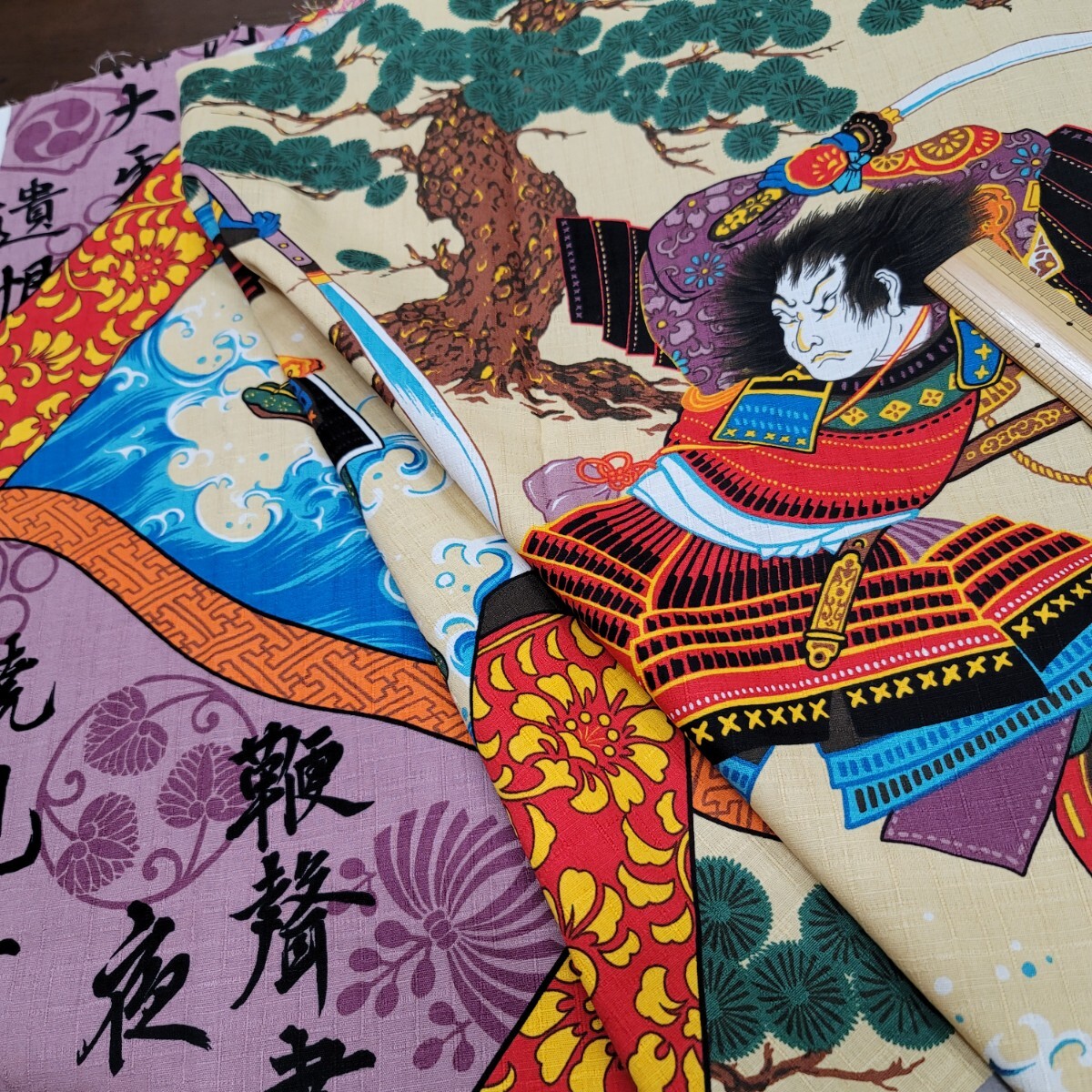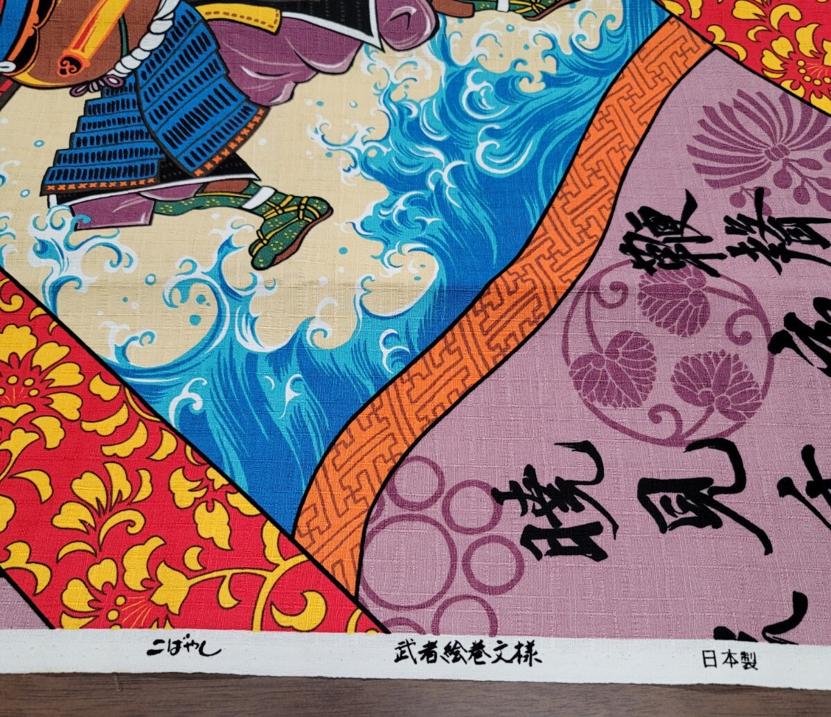 こばやし 日本製 和柄 武者絵巻文様 綿生地 一閑張りに