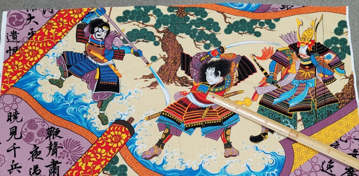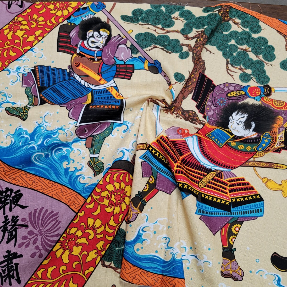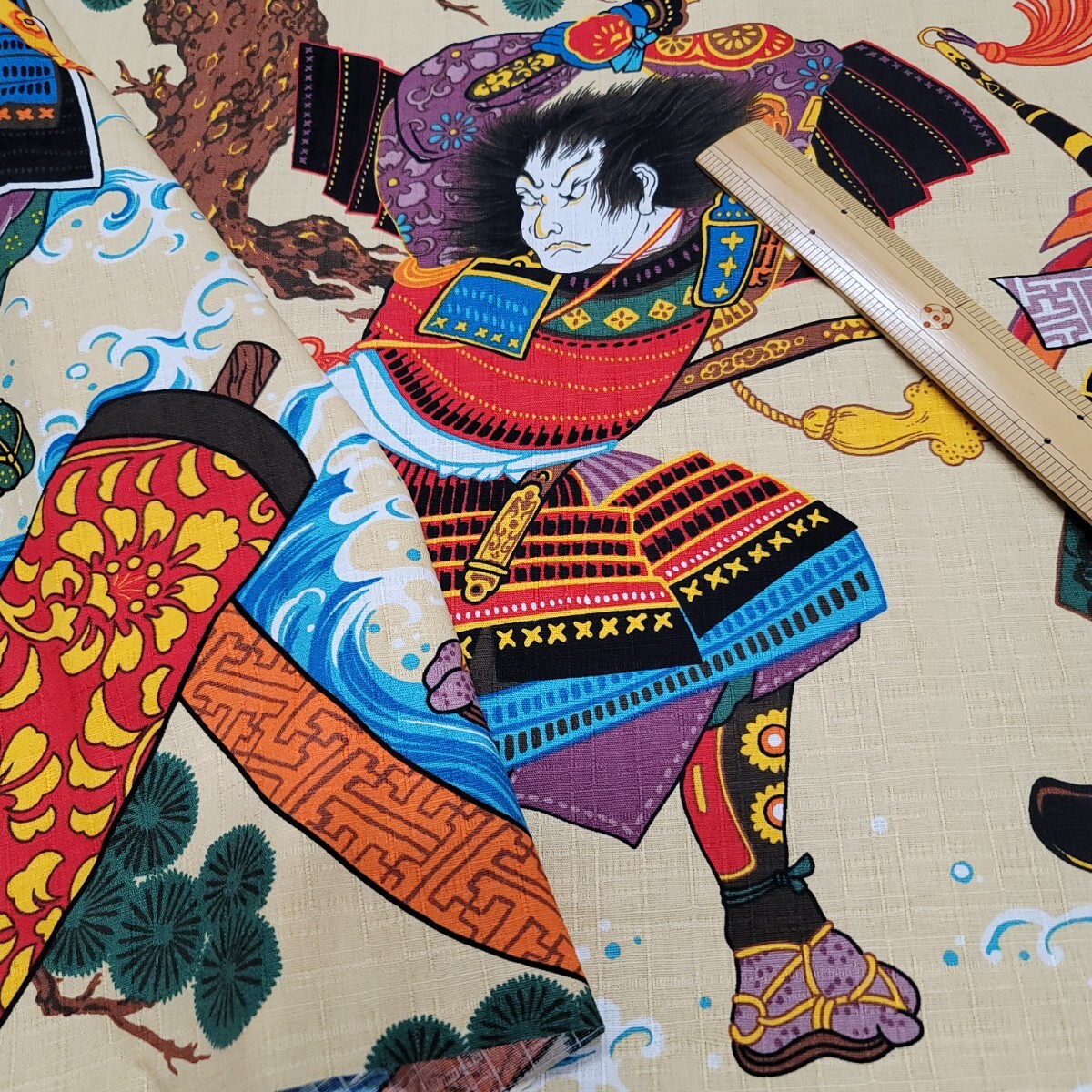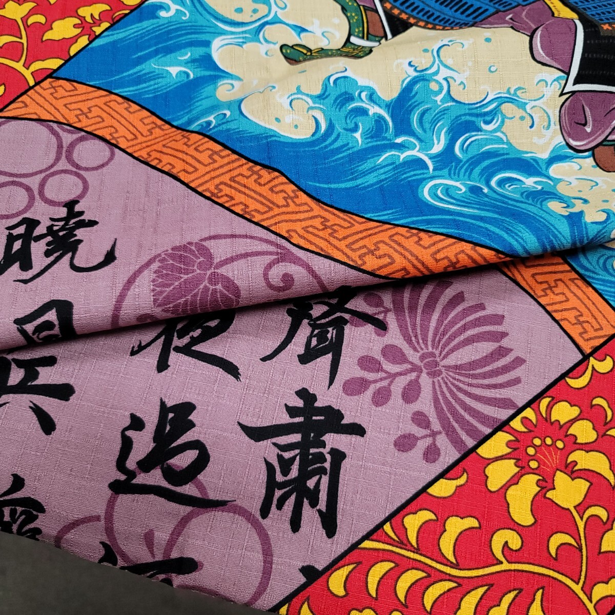 こばやし 日本製 和柄 武者絵巻文様 綿生地 一閑張りに