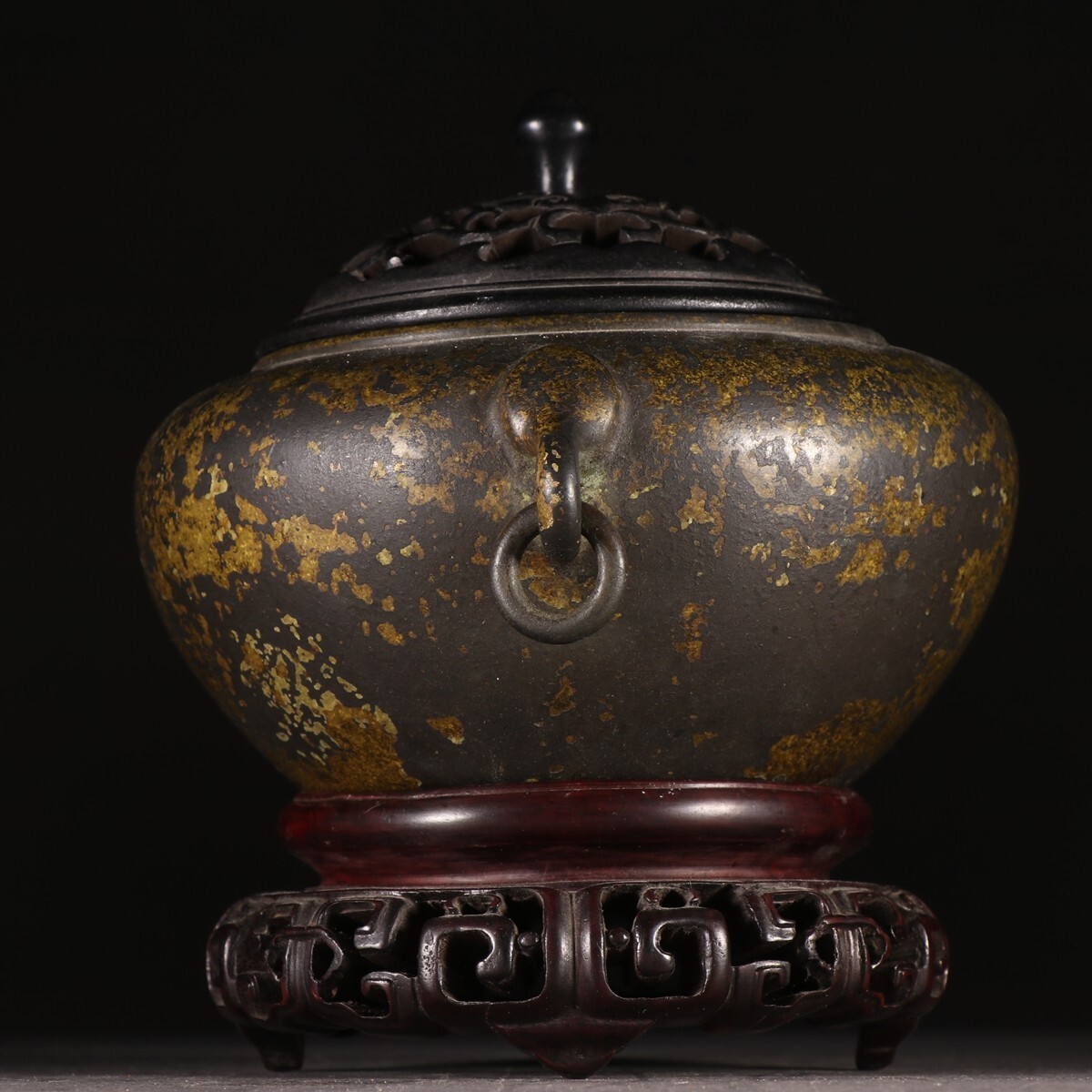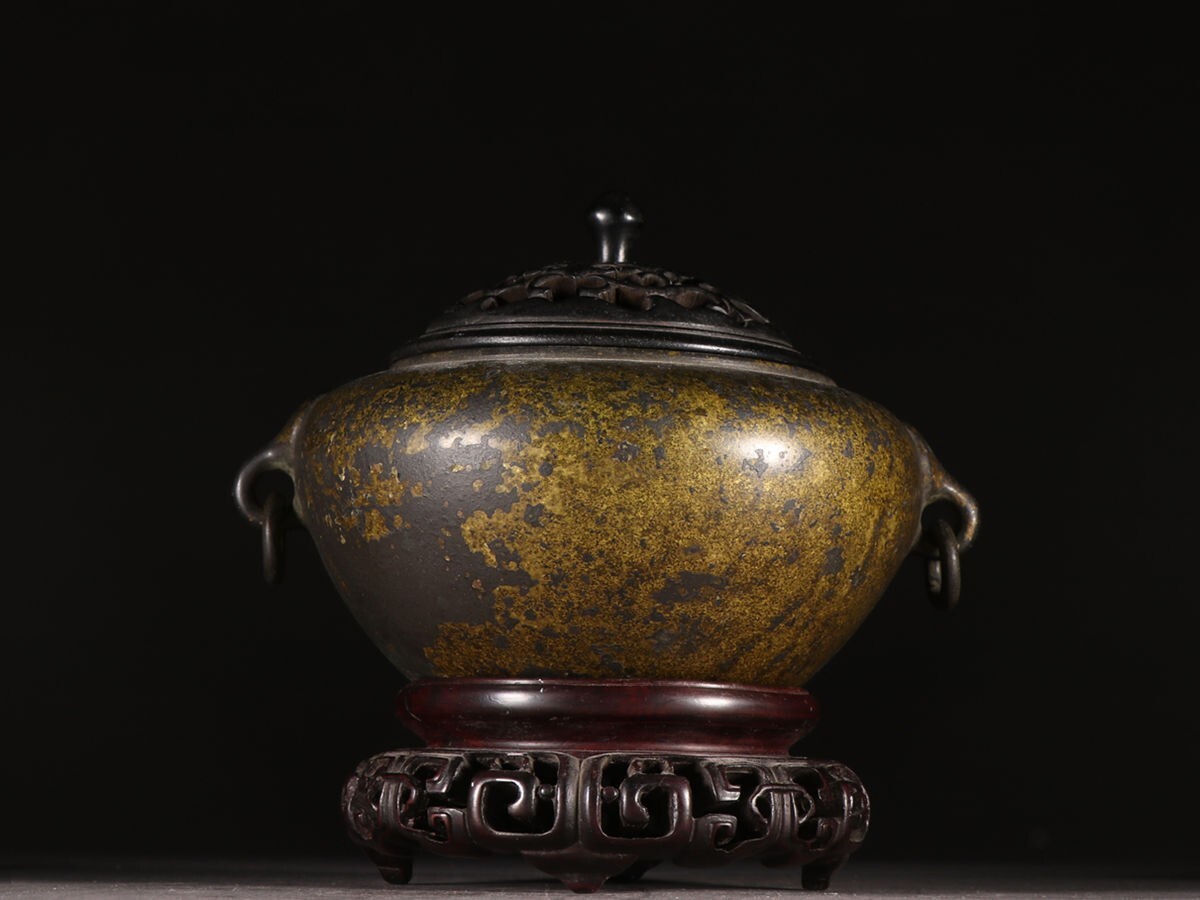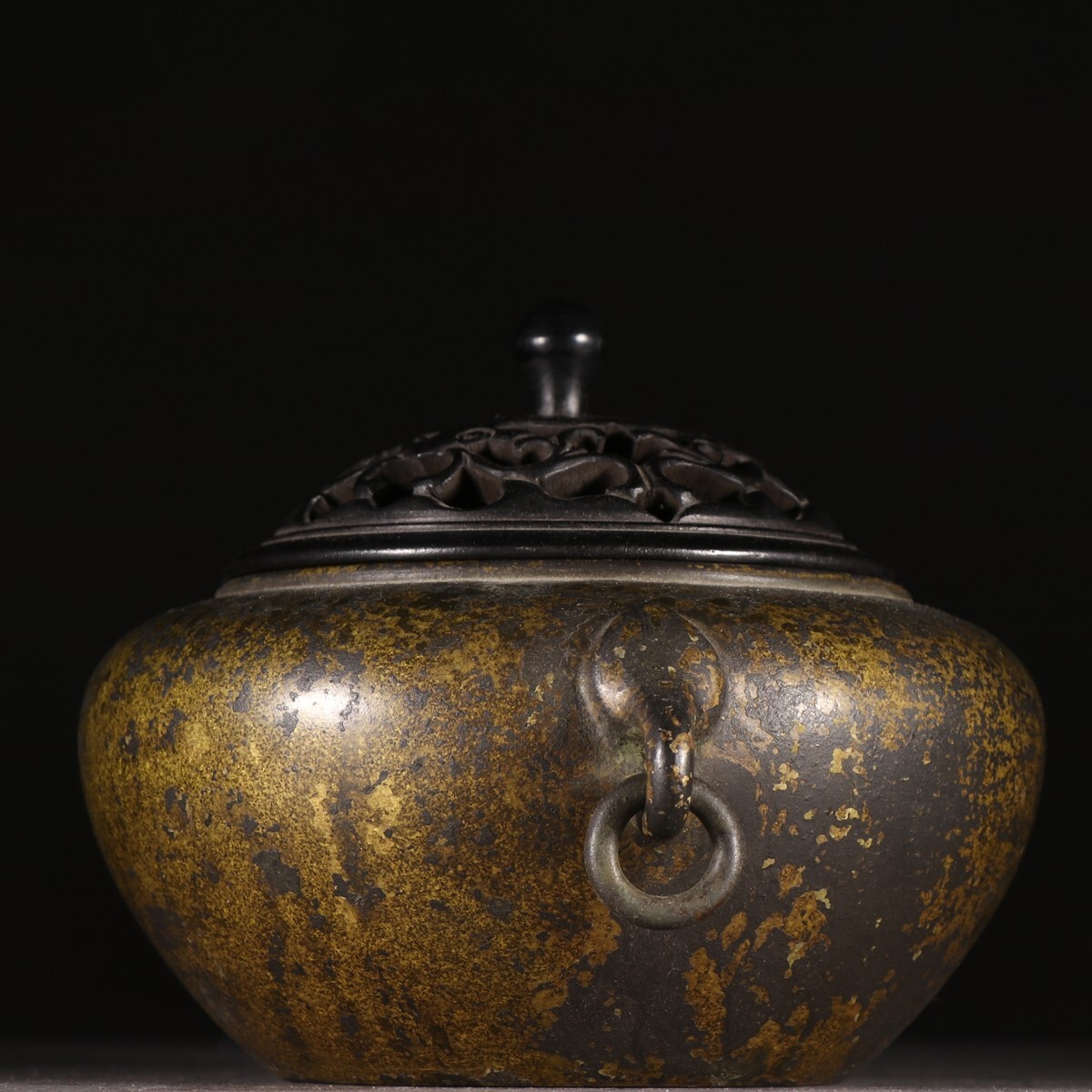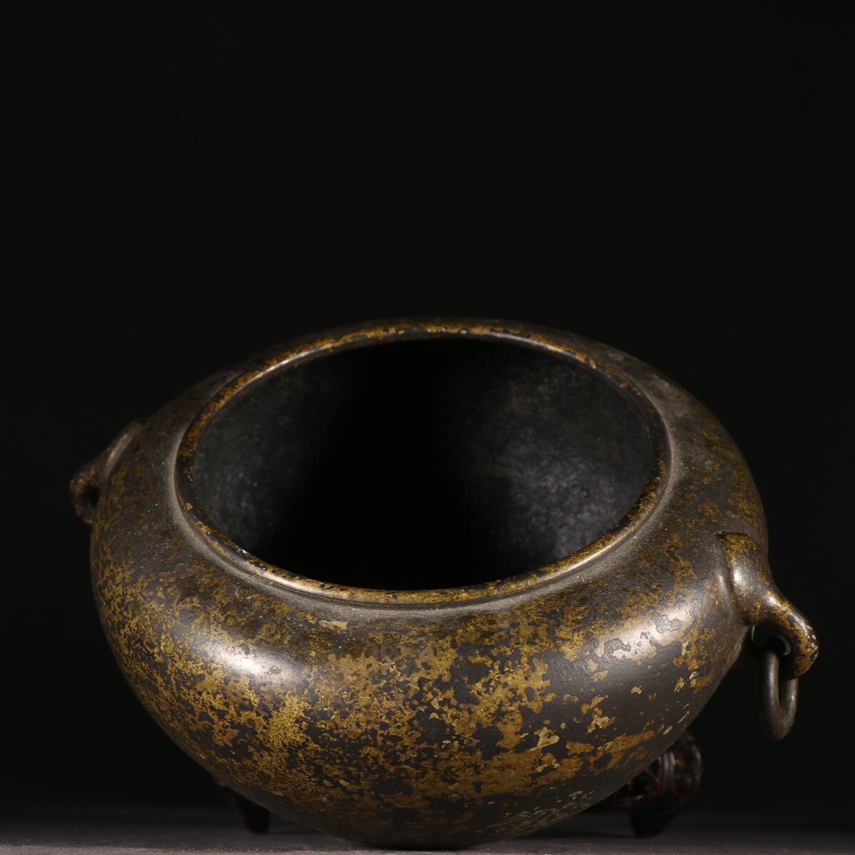 「清代 家藏珍寶 古銅彫 象鼻銜環耳老銅香薰炉」旧銅器 置物擺件 賞物 中国古美術 旧蔵出
