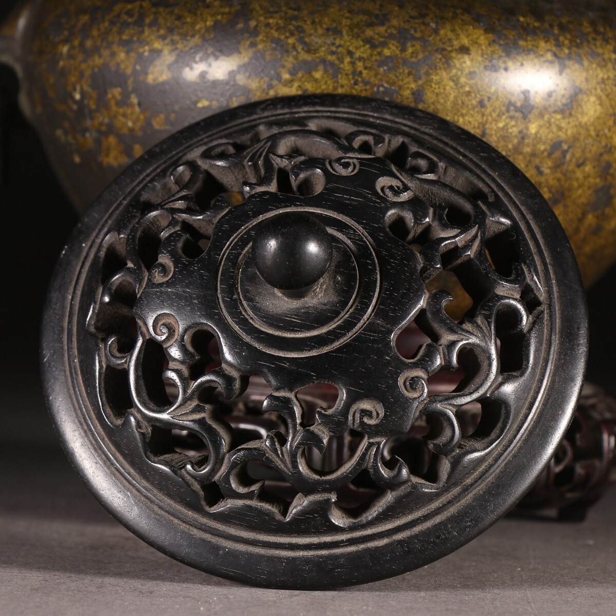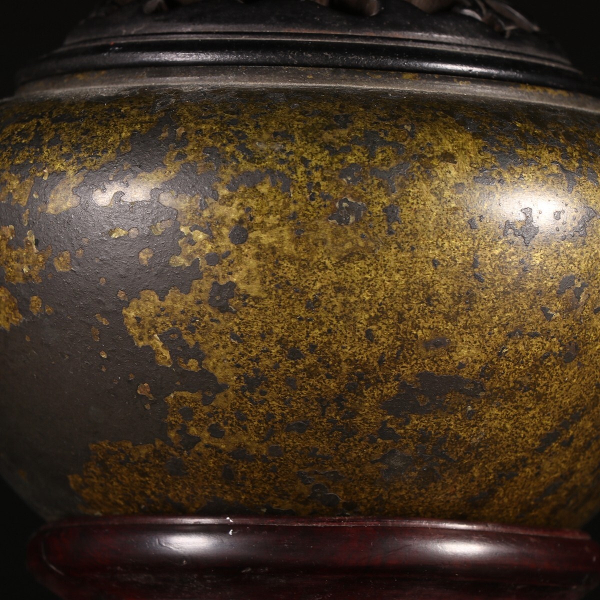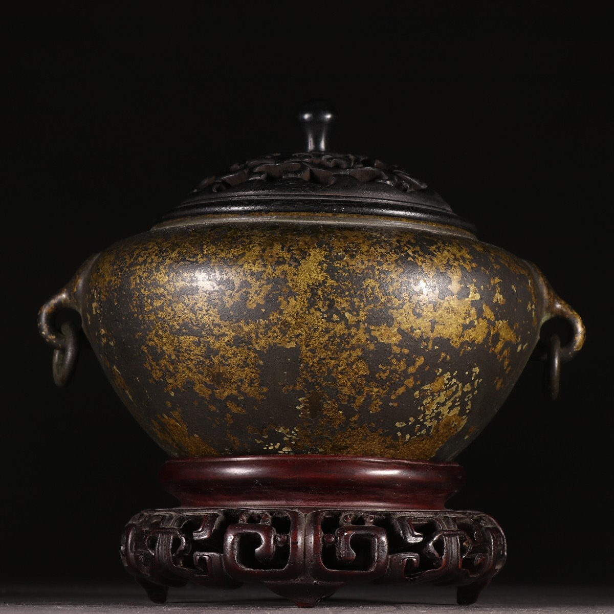 「清代 家藏珍寶 古銅彫 象鼻銜環耳老銅香薰炉」旧銅器 置物擺件 賞物 中国古美術 旧蔵出