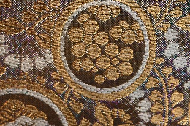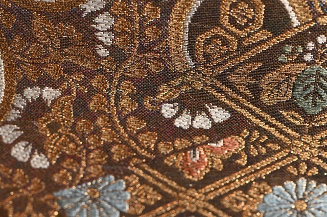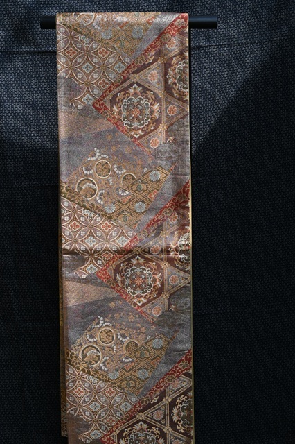 袋帯 六通 正絹 唐織 金糸 ガード加工 美品