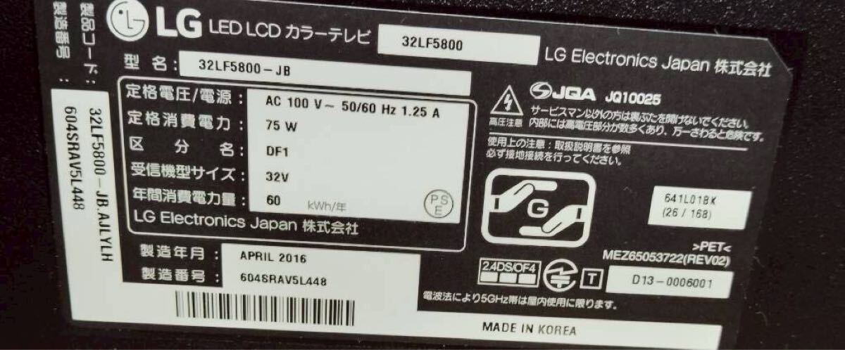 商品詳細 | ◯G9966 LG 32V型 液晶テレビ 32LF5800-JB◯ |