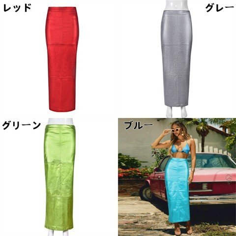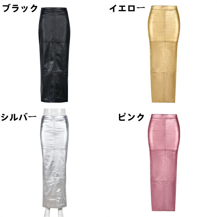 タイトスカート ロングスカート スリット入り PUレザー フェイクレザー シンプル カジュアル お出かけ S レッド