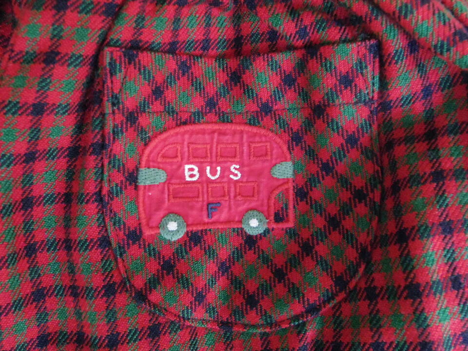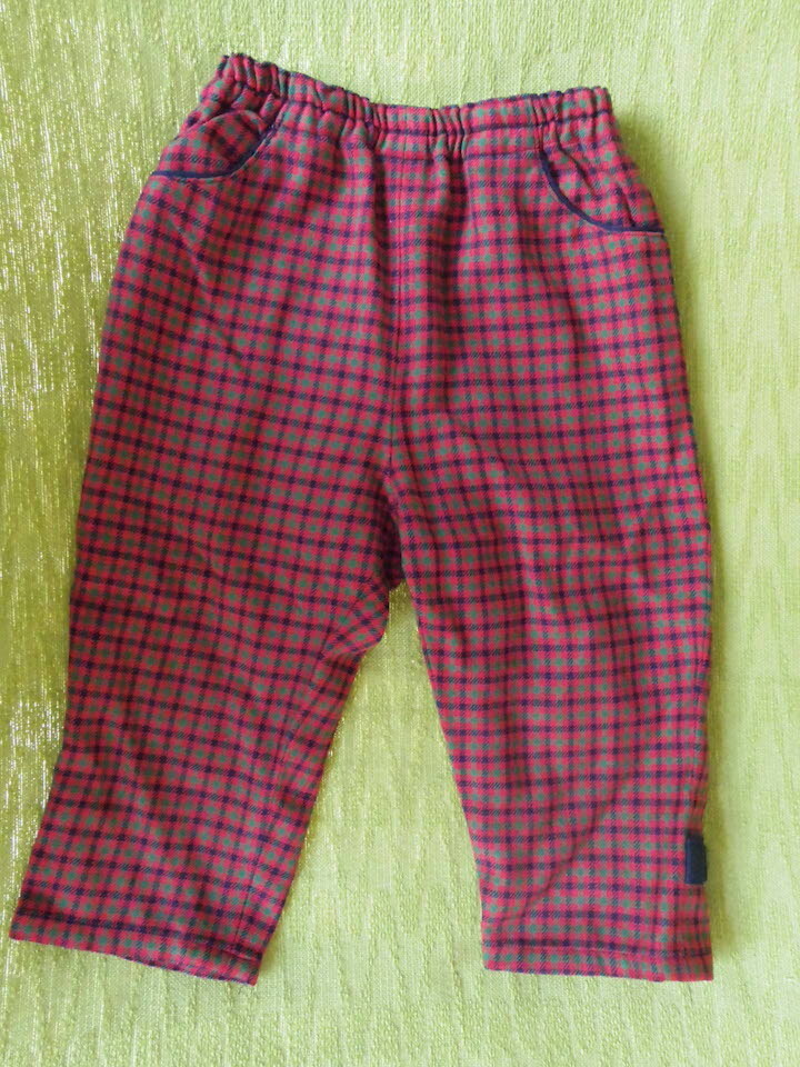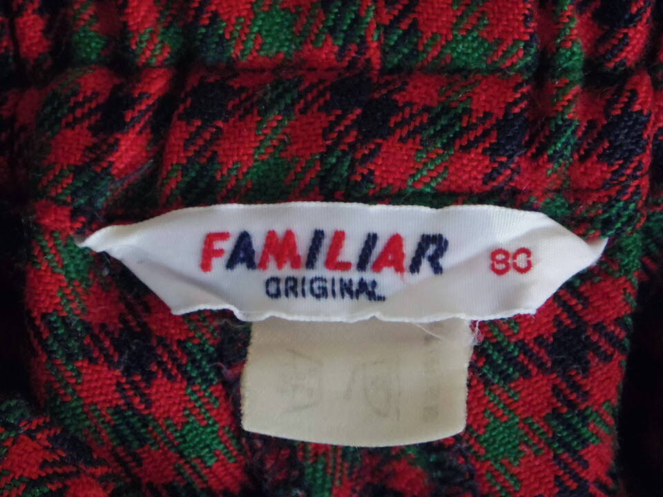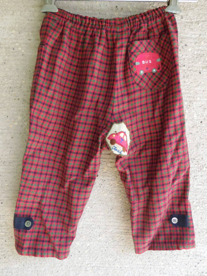 ファミリア familiar 定番チェックパンツ バスと赤いタクシーのアップリケ アクリル/ウール 90